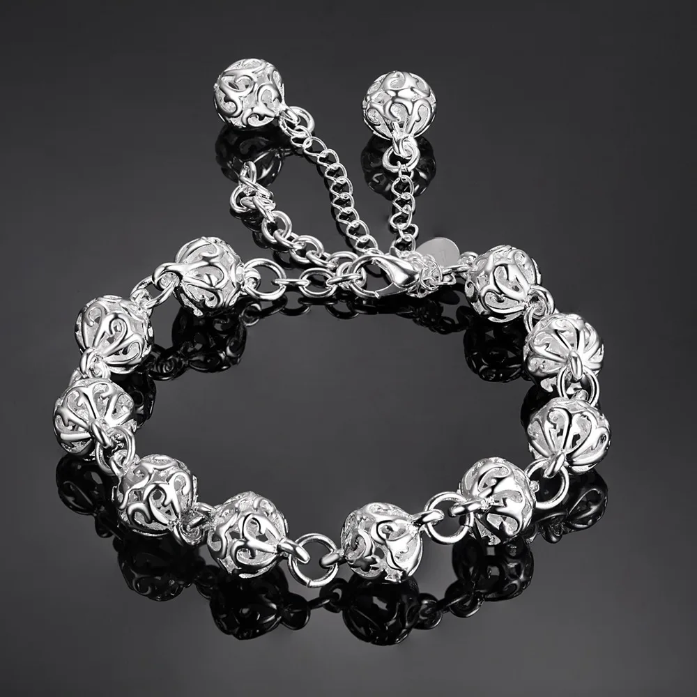 Мужские серебряные 925 цепи полые 10 мм браслеты с шариками вечерние Браслеты Ретро ювелирные аксессуары для женщин Подарки