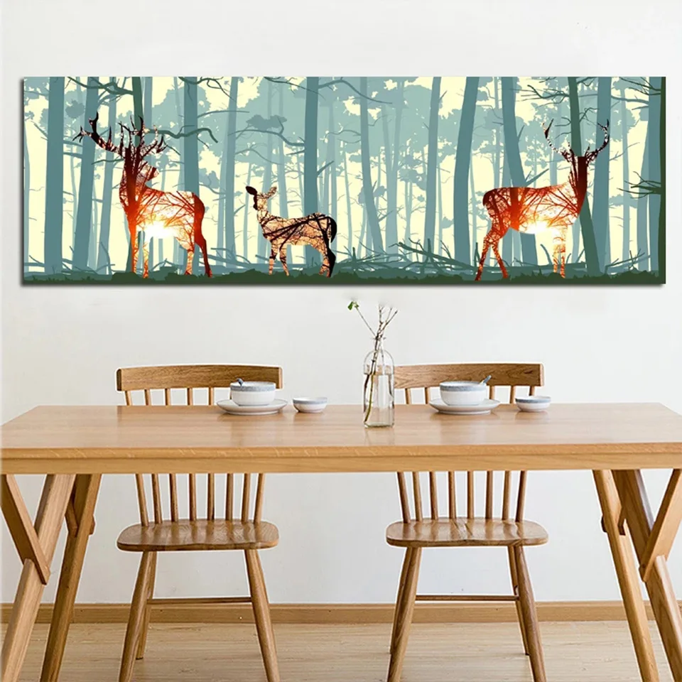 Алмазная 5D Вышивка с абстрактным оленем, лесом, птицей, в скандинавском стиле
