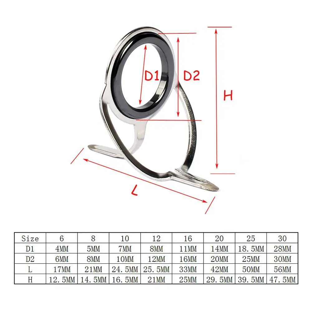 DesignCeramic Fishing Rod Guide Tip Top Ring Circle Pole Strong Line Repair Set Kit DIY Eye Line Rings Stainless Steel Frame