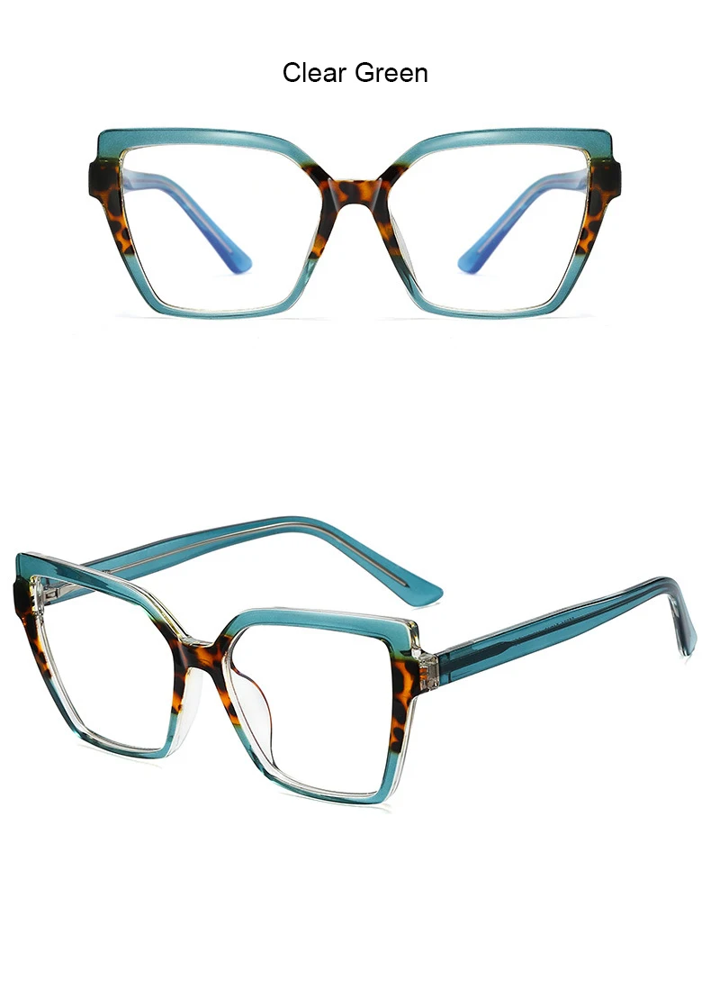 Очки для чтения компьютерные, большие зеленые прозрачные с квадратн...