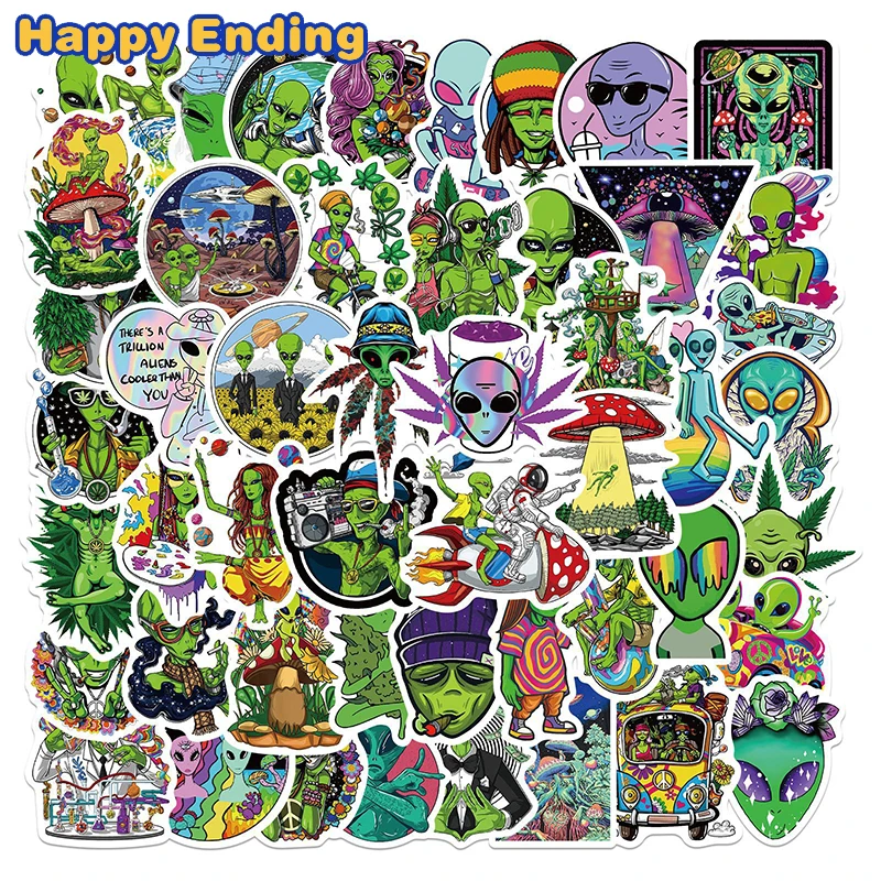 Стикер психоделический с изображением инопланетянина, 1050 шт.