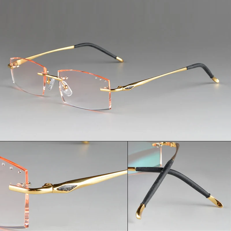 Очки для чтения титановые мужские, без оправы, оптические, без оправы, с диоптриями, алмазный режущий ридер, для дальнозоркости