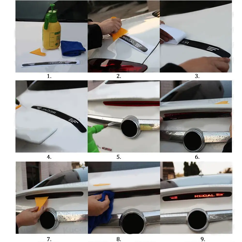 4. Распылите воду на заднюю часть автомобильной наклейки и светильник ла.