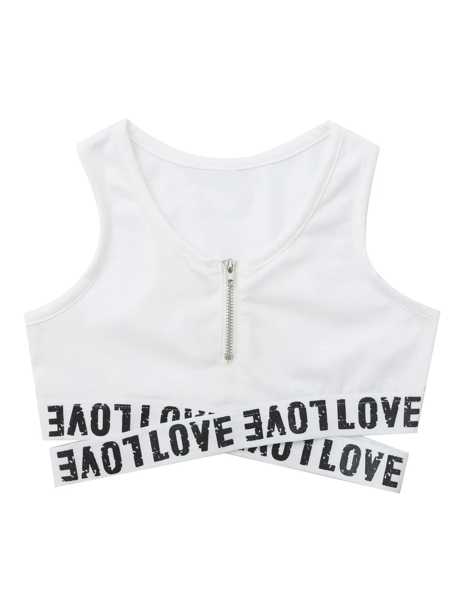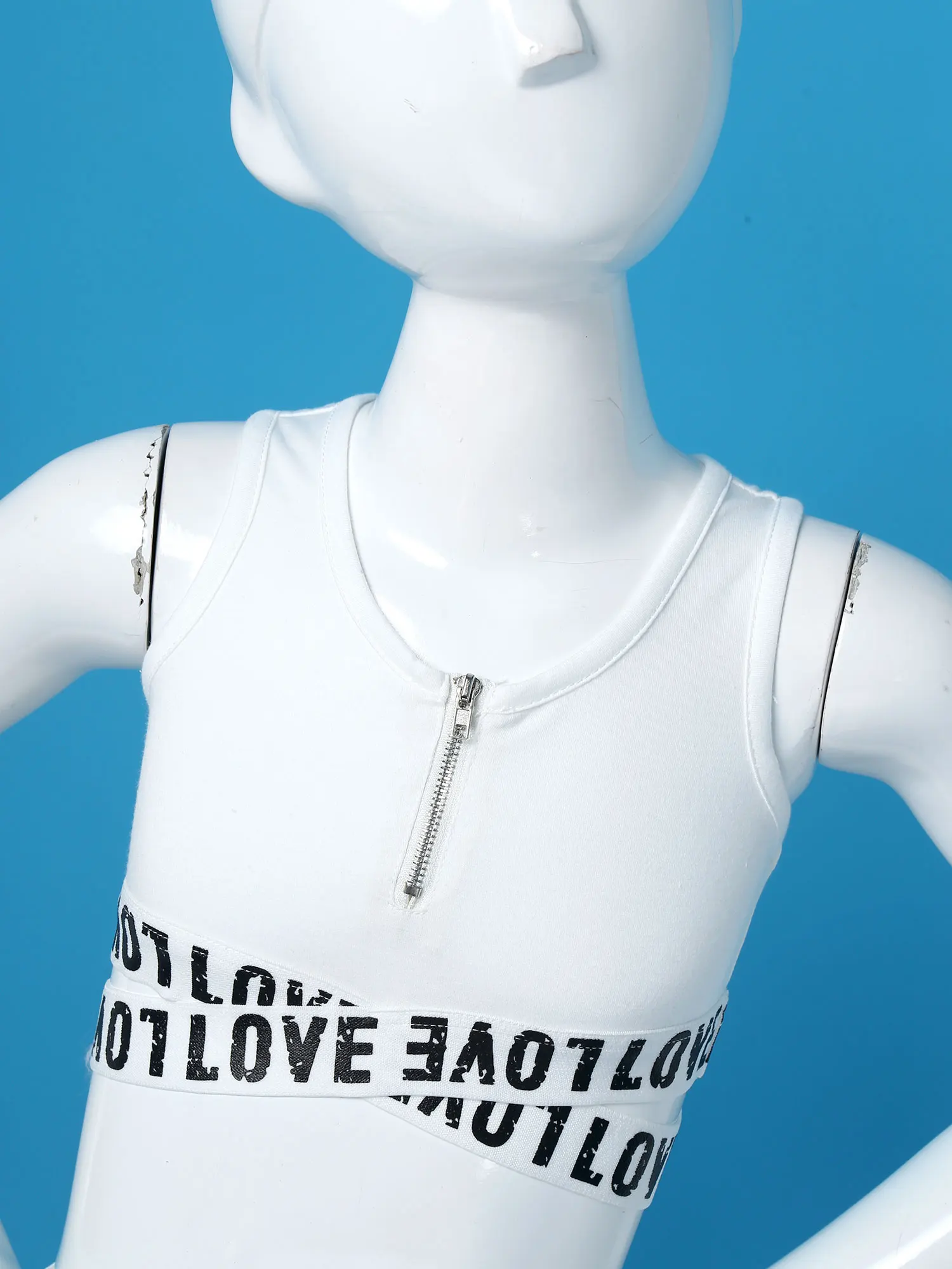 Укороченный топ без рукавов, круглый вырез, спинка-борцовка, застежка-молния. Эластичная ткань, удобная и дышащая.