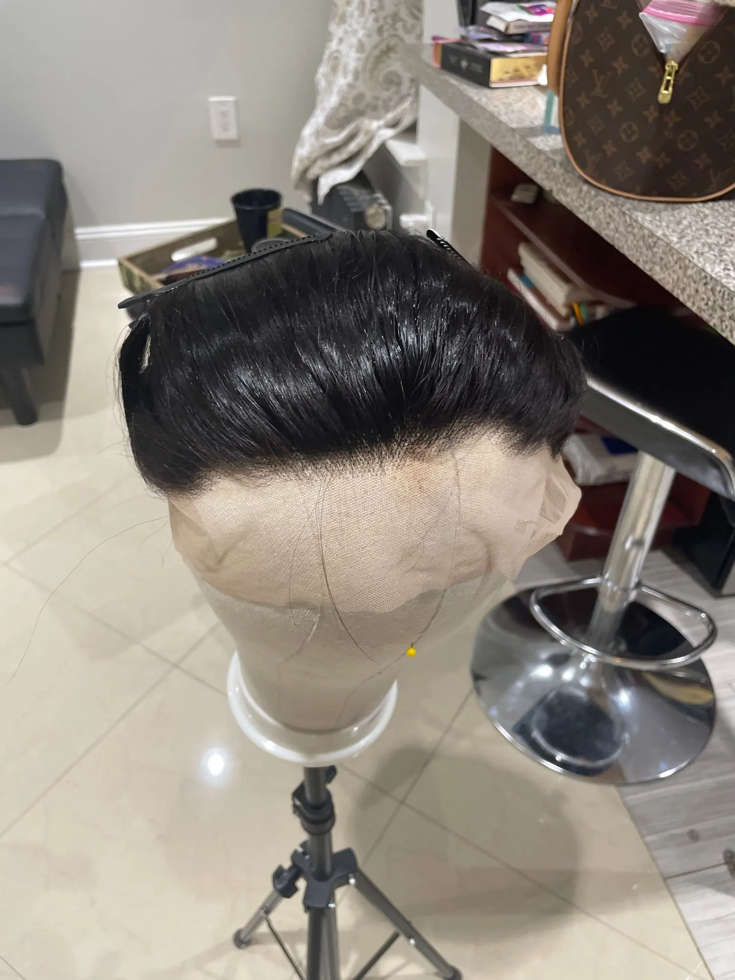 Этот парик-бомба! Впервые установила фронтальную головку, и она очень хорошо проложена. Очень мало линяет. Я также покрасил его в черный цвет, и он очень понравился.