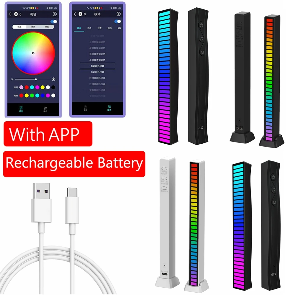 RGB USB 32 светодиодная подсветка управление через приложение стерео музыка спектр звука Уровень индикаторный усилитель VU Измеритель для автомобильного плеера атмосферные лампы