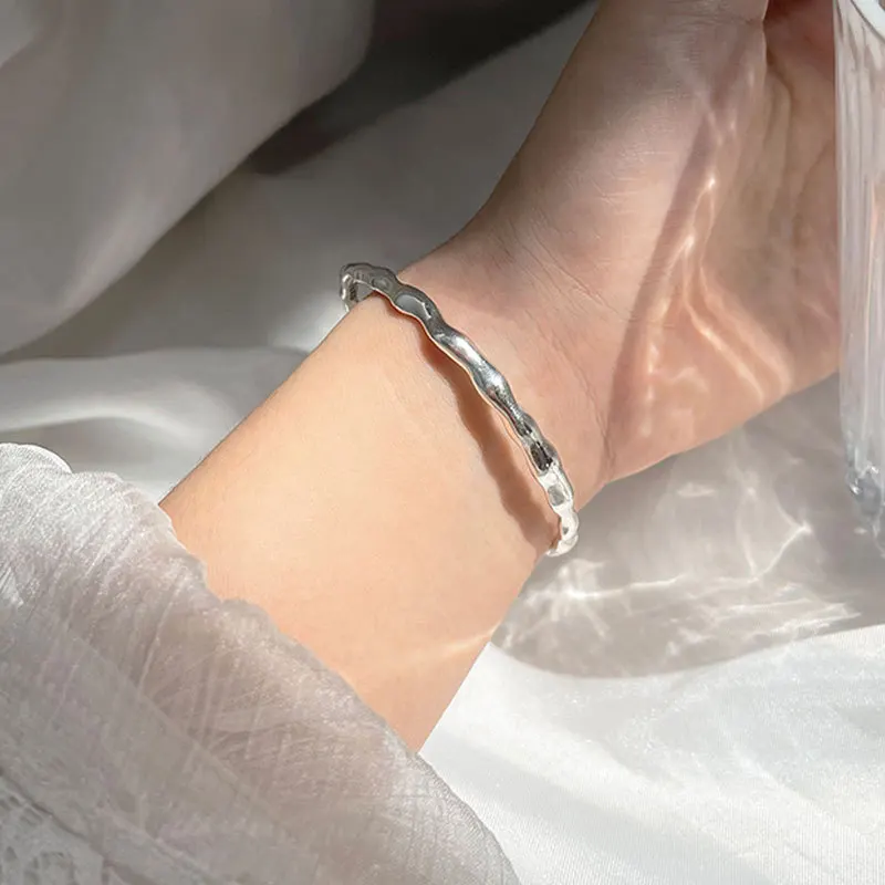 Браслеты FOXANRY из стерлингового серебра 925 пробы, простые аксессуары, модные элегантные гладкие волнистые геометрические Открытые Браслеты для пар, ювелирные изделия вечерние Ринок