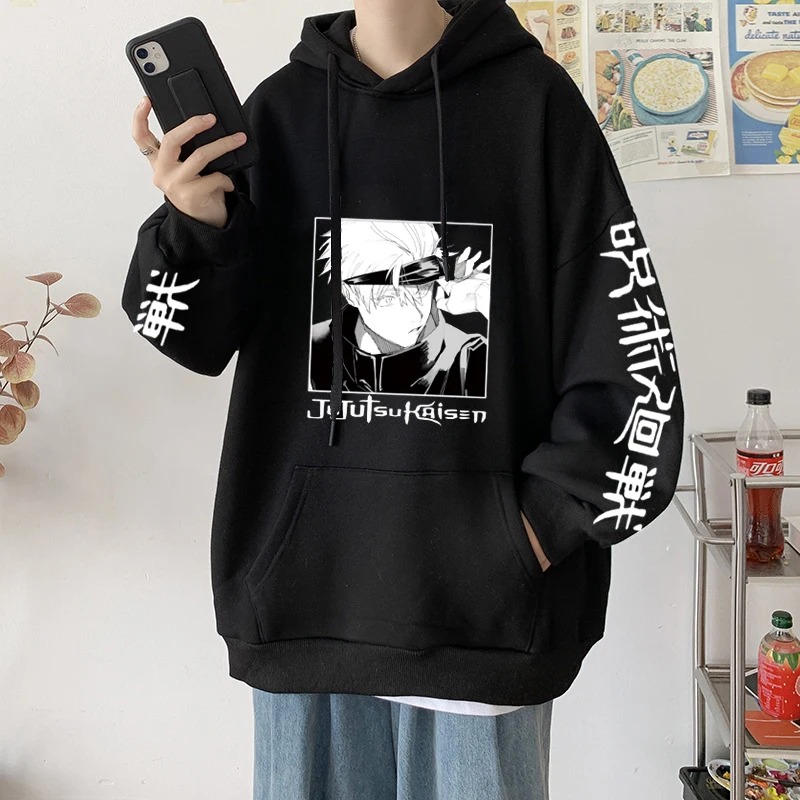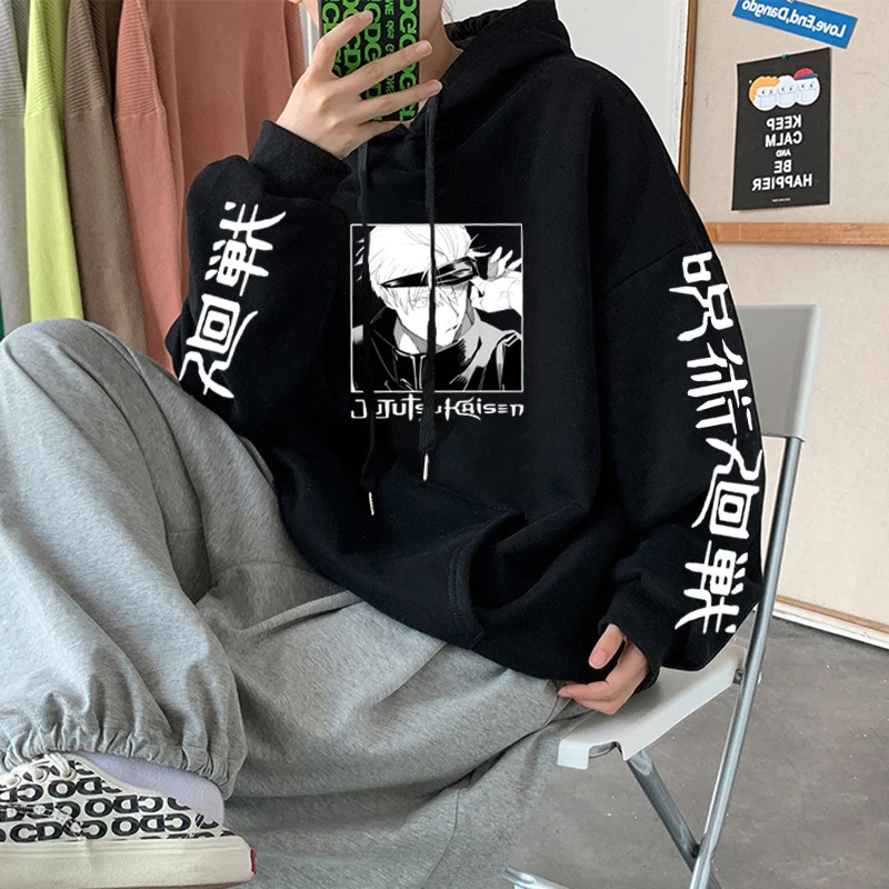 Худи джутсу касин хип-хоп Аниме пуловер с буквенным принтом Топ свободный с длинным рукавом Осенняя мужская Толстовка