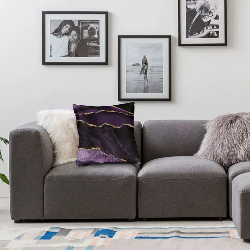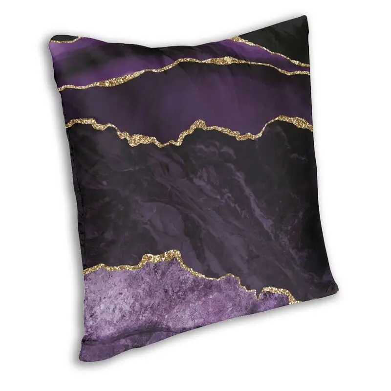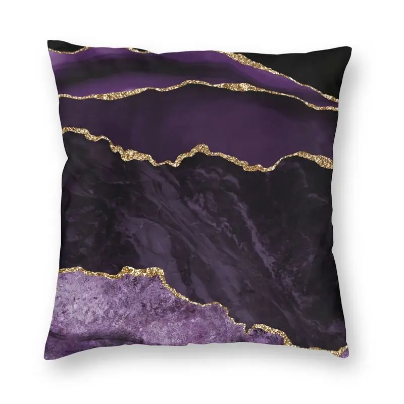 Чехол для подушки с фиолетовым и золотым агатом 40x40, домашний декоративный 3D-чехол для диванной подушки с геометрическим рисунком под мрамор, двусторонний чехол для дивана