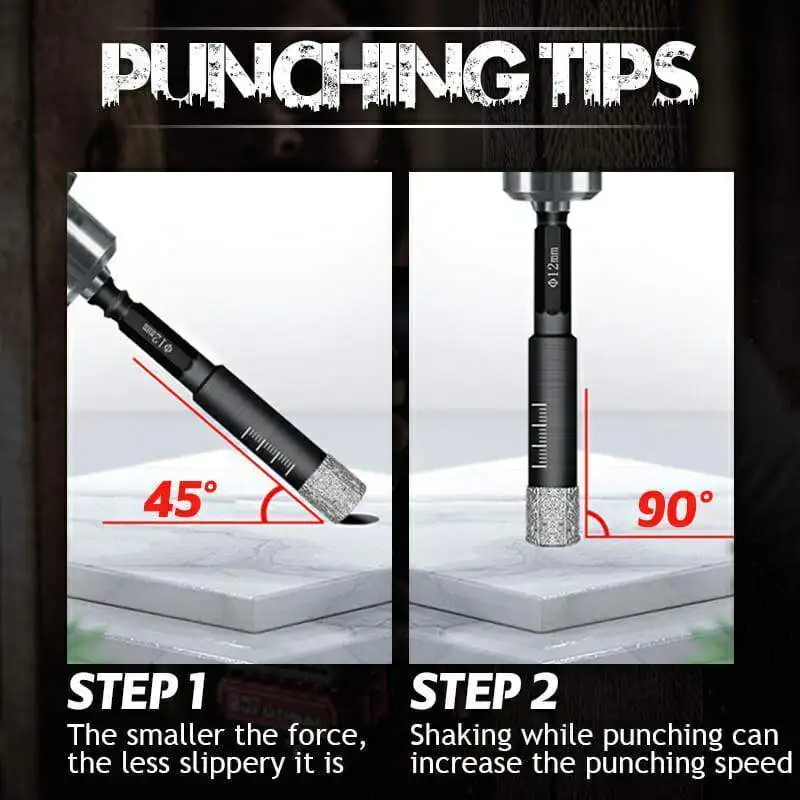 Алмазное сверло интегрировано с высококачественным охлаждающим воском,Сухое бурение без воды,Технология вакуумной пайки и высококачественные алмазные зернаОбеспечивает высокую эффективность работыИДолгое время работы.