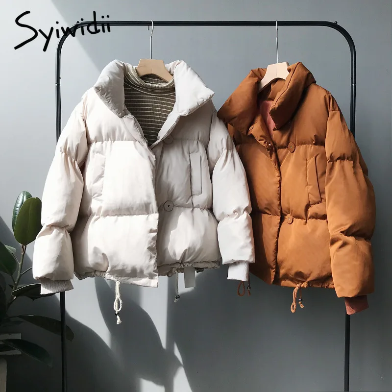 Куртка женская зимняя оранжевая, с воротником-стойкой, в стиле Харадзюку, на осеньзиму, 2021