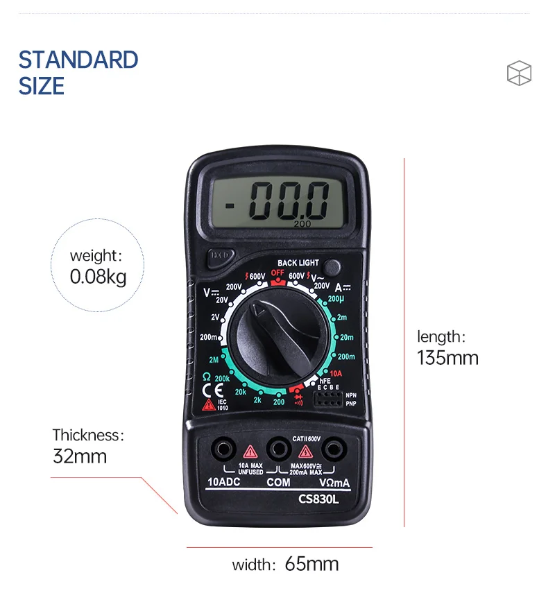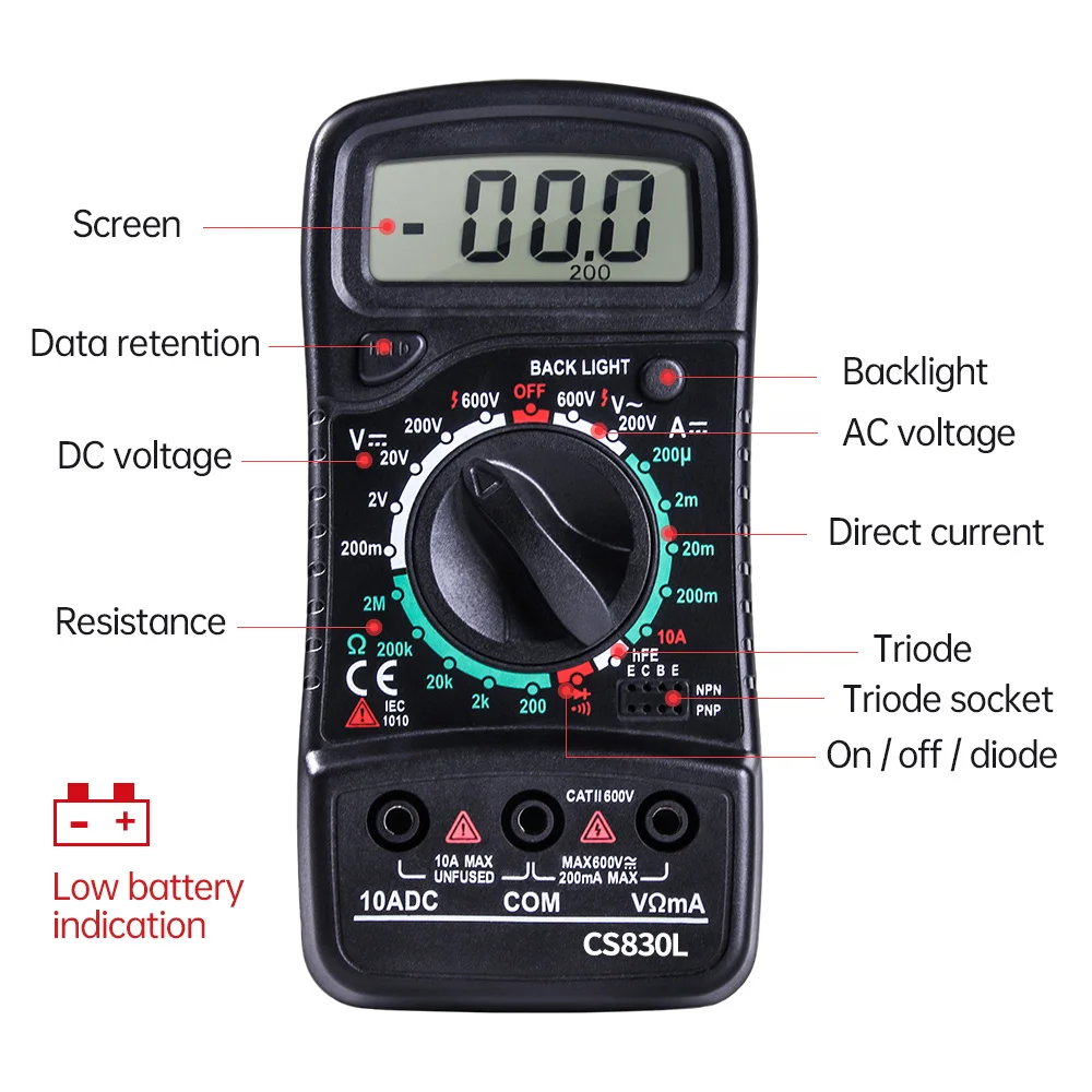 Цифровой мультиметр, тестер A-BF CS830L, вольтметр, амперметр, тестер сопротивления, Омметр, транзистор, ручное хранение данных с задней подсветкой
