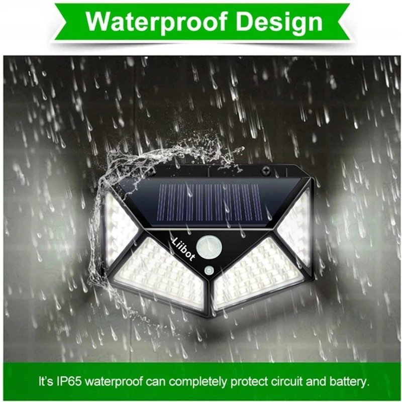 Мощные светодиодный жные светодиодные Солнечные настенные светильники, 100 светодиодный, водонепроницаемый садовый прожектор с датчиком движения для улицы, быстрая доставка