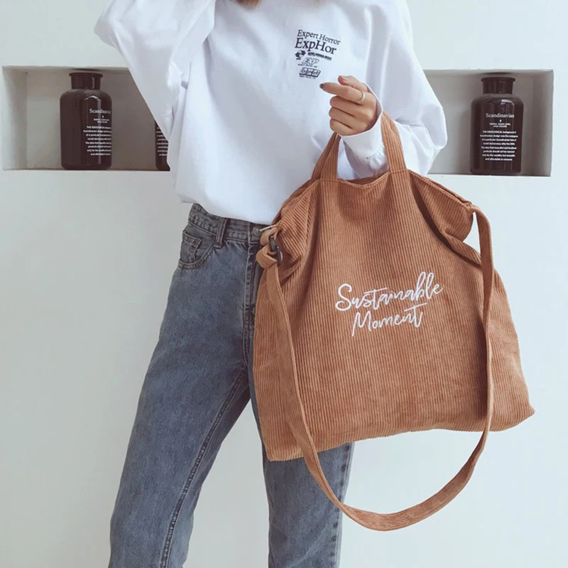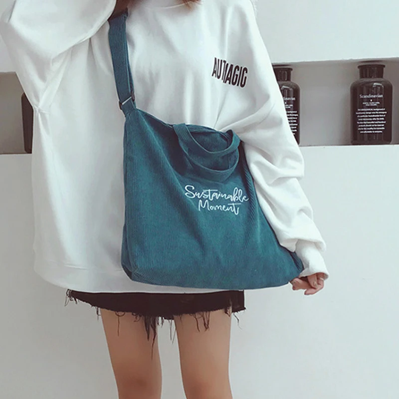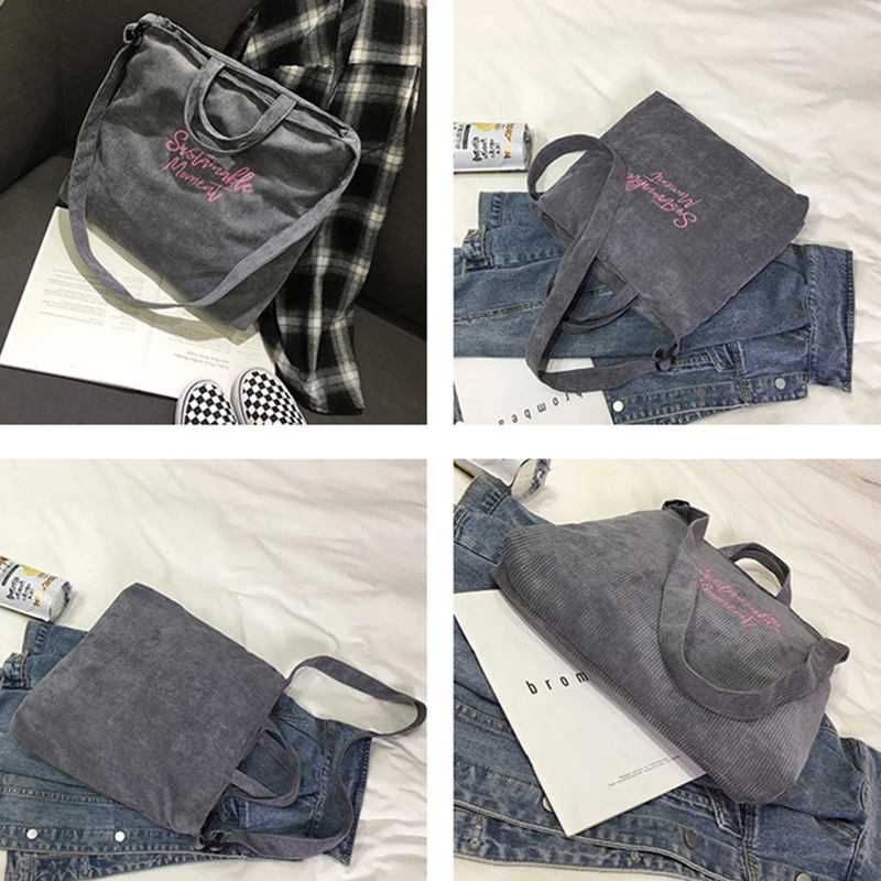 Вельветовая Холщовая Сумка-тоут для женщин, повседневный складной м...