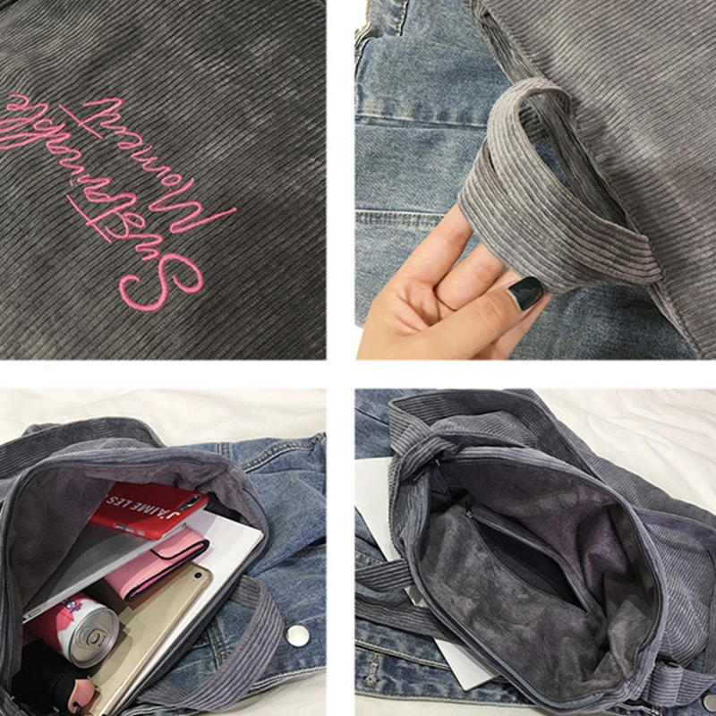 Женская Большая вместительная сумка на плечо, Женская Повседневная Вельветовая Сумка-тоут, мягкие сумки через плечо, полосатая ткань, сумка для книг, рюкзак сумки для покупок