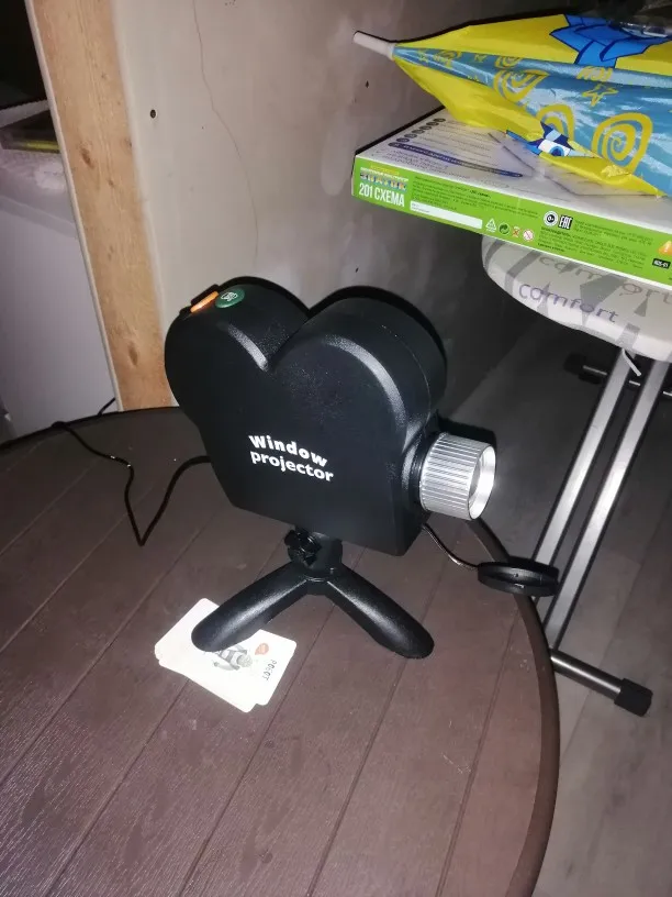 Отличный проектор! Показывает в меру четко и хорошо! На фото проецировал на бежевее плотное тканевое жалюзи, на белую клеёнку в комплекте светит лучше! Довольны дети, я больше них! Теперь ждем Новый Год чтобы порадовать всех в округе! До Астрахани в постамат пятерочки за две недели! Упаковка хорошая, даже подарить не стыдно! Рекомендую!