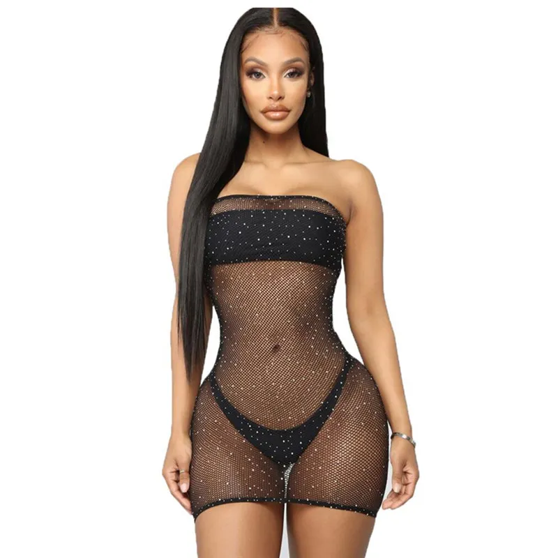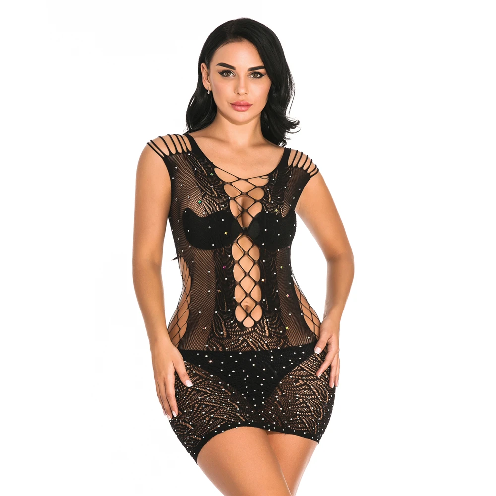 Откровенное женское нижнее белье, платье в сеточку со стразами, соблазнительное Эротическое нижнее белье, комбинации, костюмы, костюм-кошка, прозрачные ночные платья