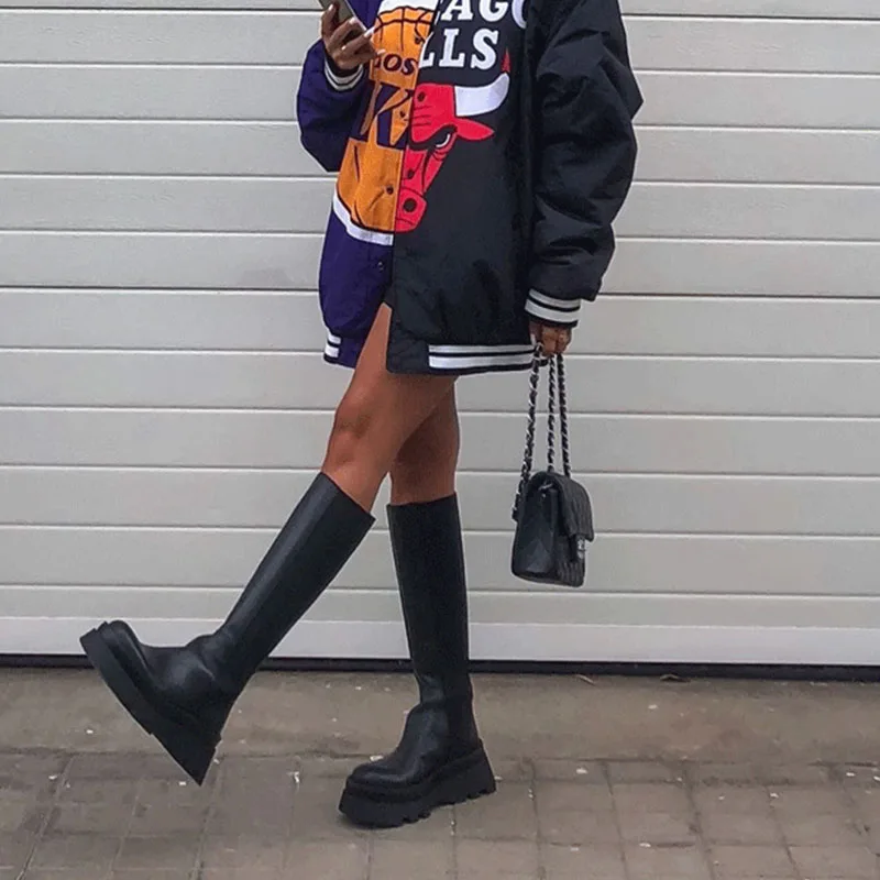 Женские сапоги выше колена, мотоциклетные сапоги Челси на платформе...