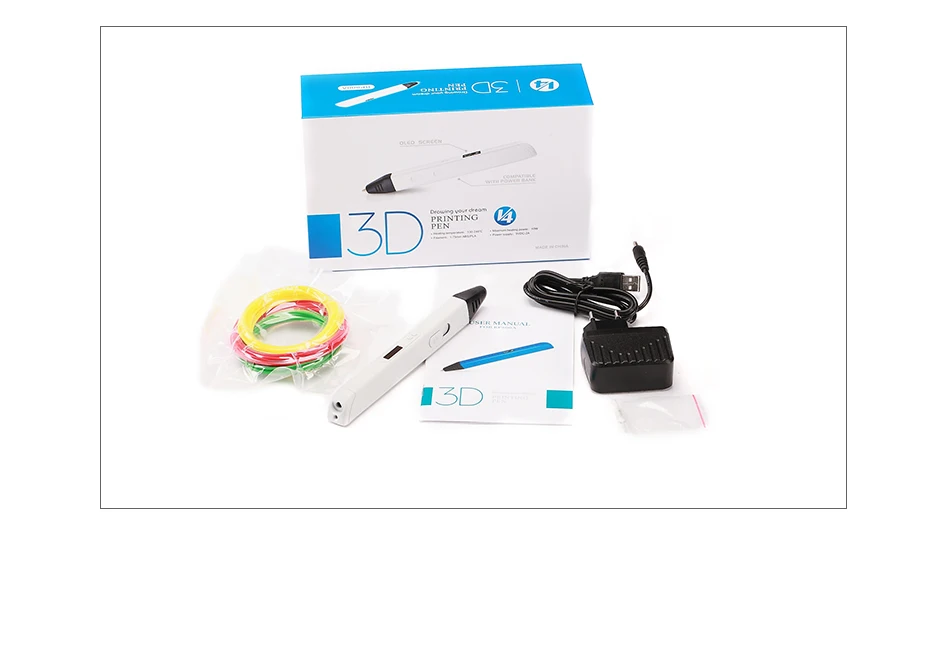 1. Стандартная упаковка (3D Ручка + 3 цвета тестовых материалов)