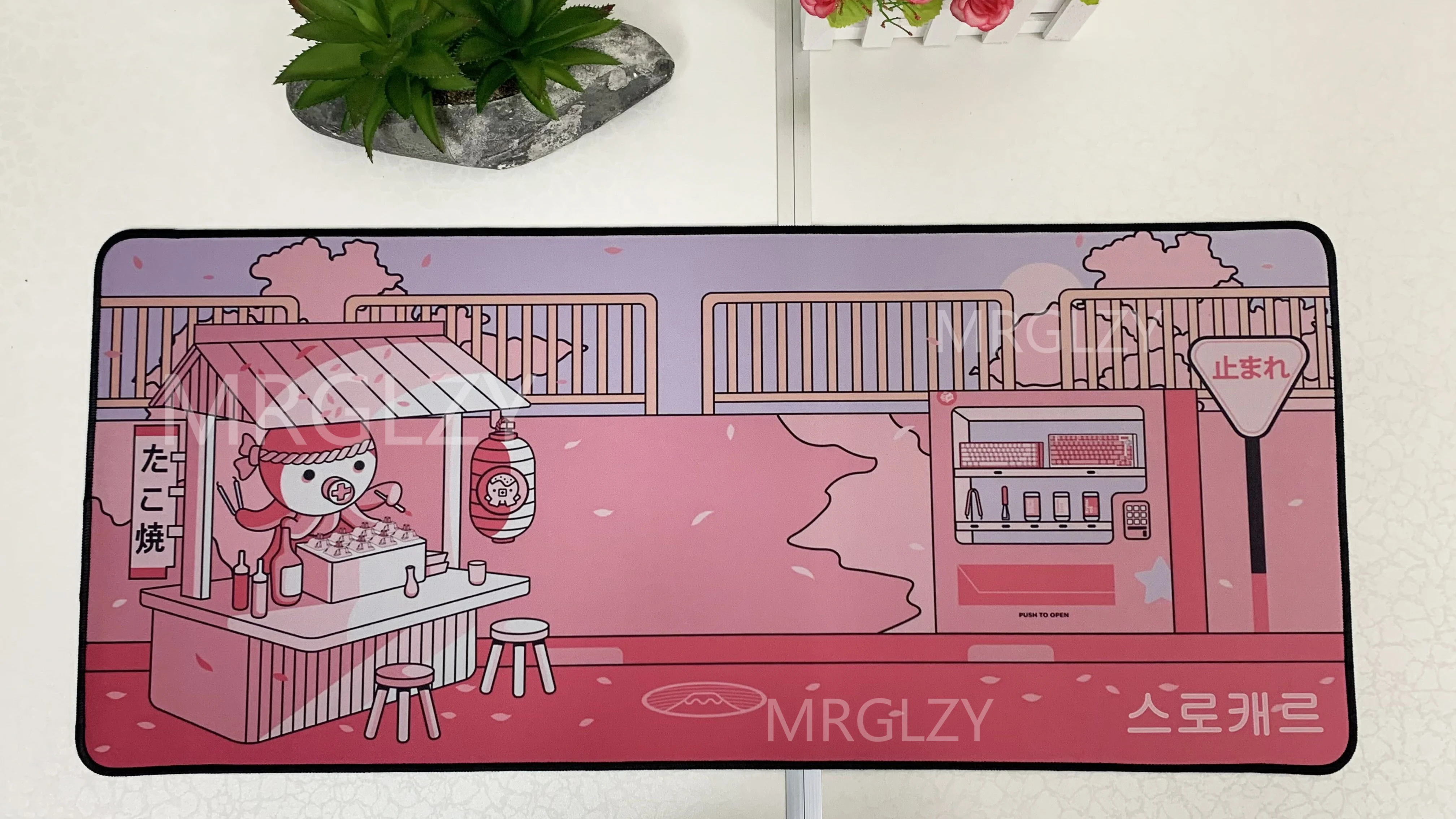 Игровой коврик для мыши в японском стиле XXL, большие коврики розов...