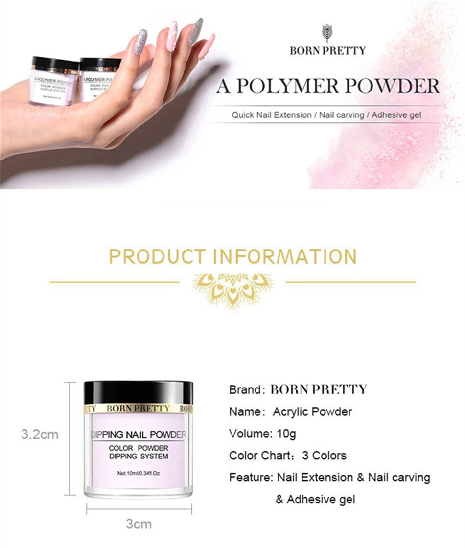 Акриловое искусственное наращивание BORN PRETTY прозрачный белый розовый цветок резьба пыль мощный маникюр Дизайн ногтей украшение блеск