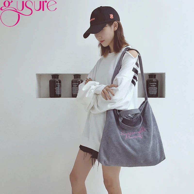 Gusure, женские винтажные сумки для покупок, Вельветовая сумка на плечо, Студенческая книжная сумка, сумки большой емкости, Женская Повседневная Сумка-тоут