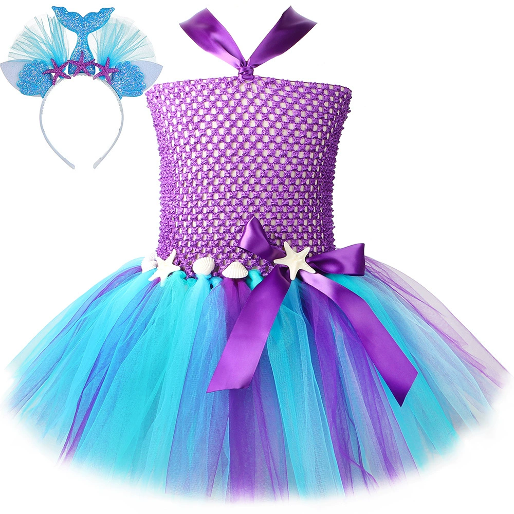 Вечерние платья Русалочки для девочек; Детские новогодние костюмы; Платья принцессы Русалочки с повязкой на голову; Одежда для маленьких девочек