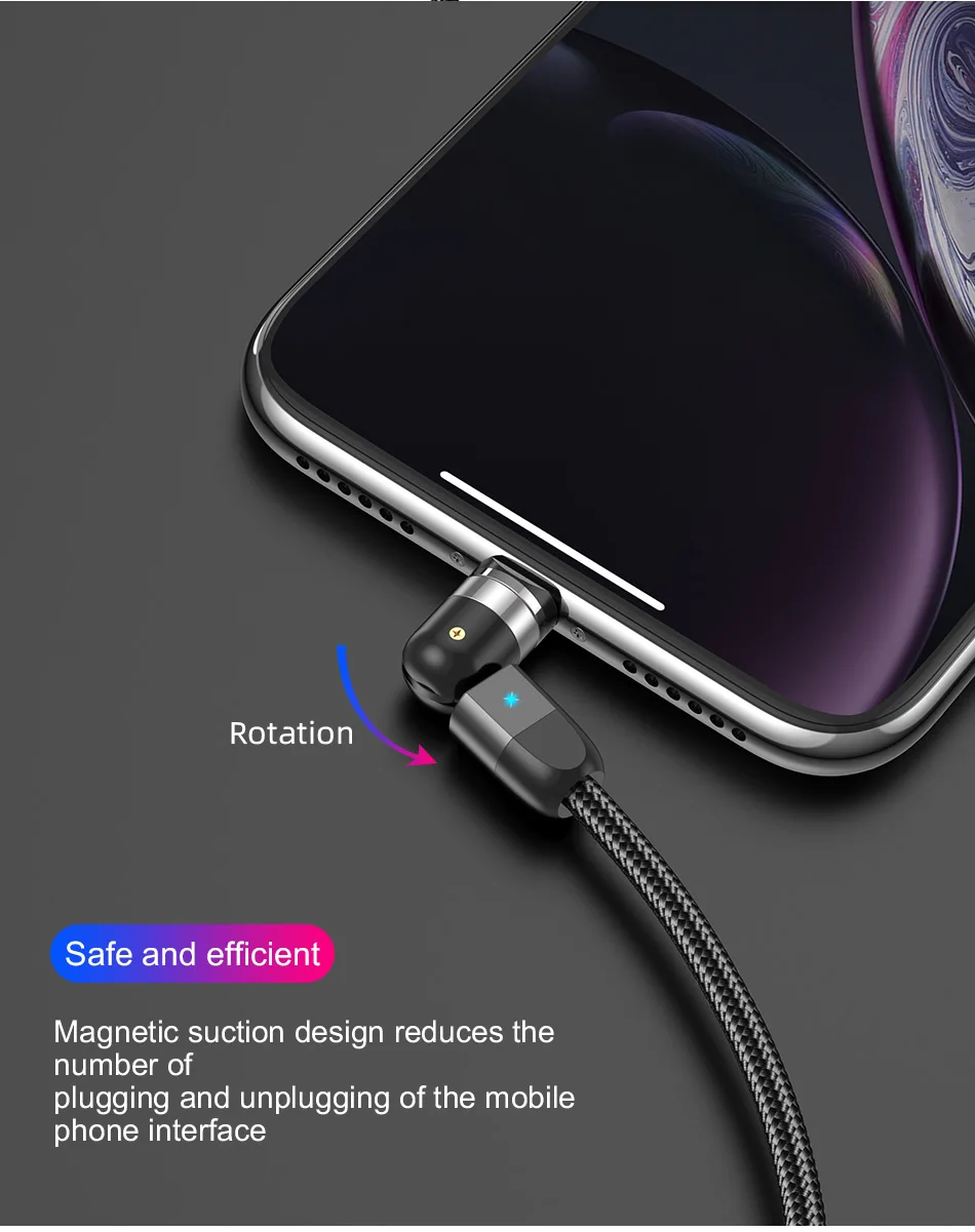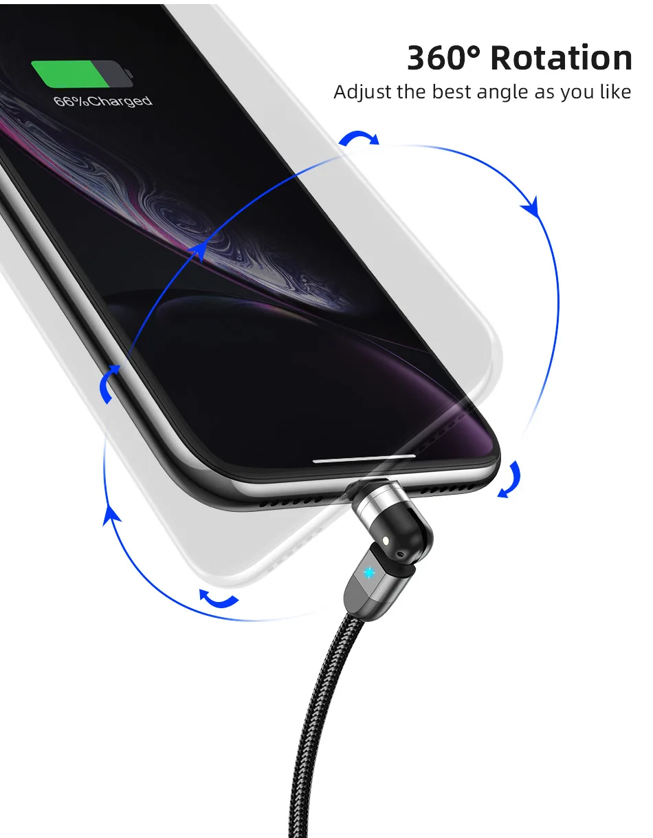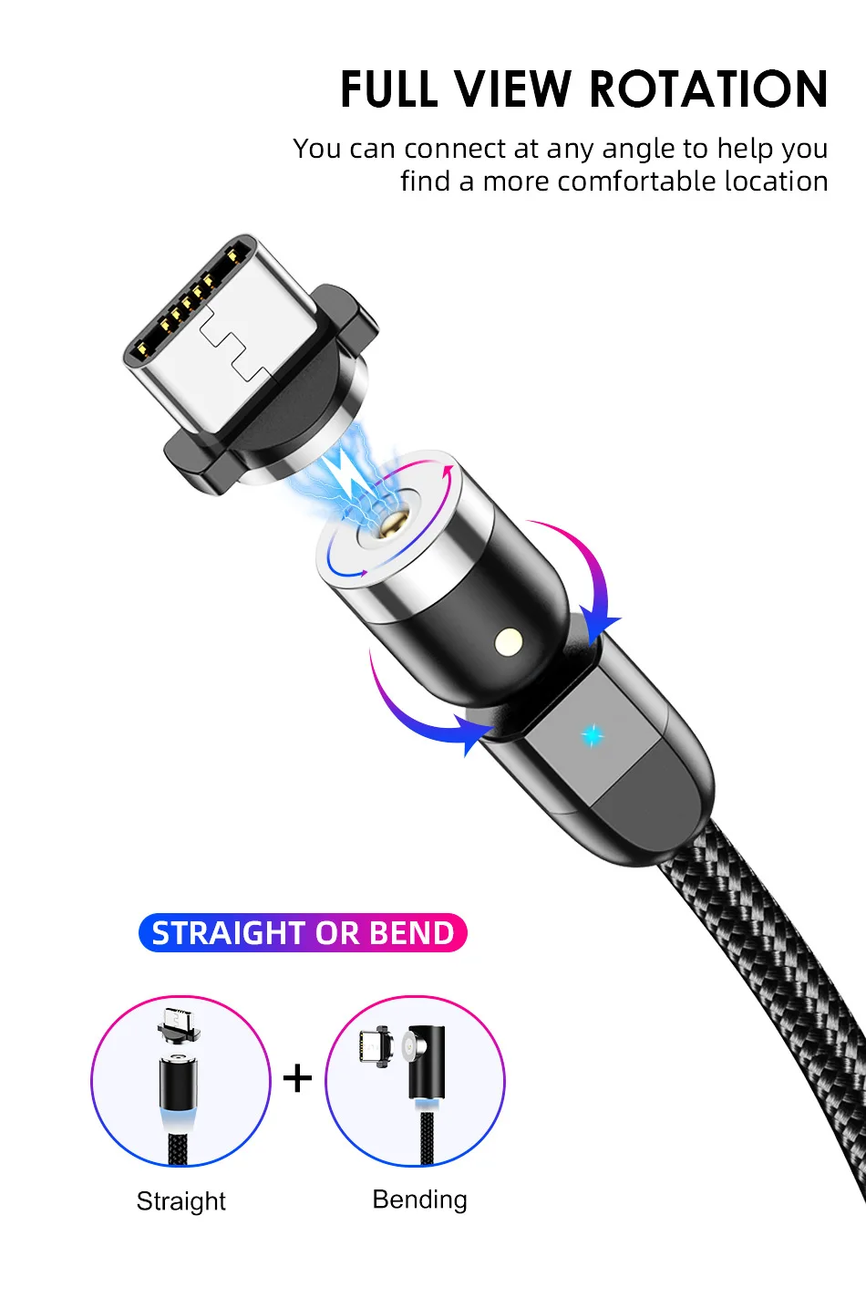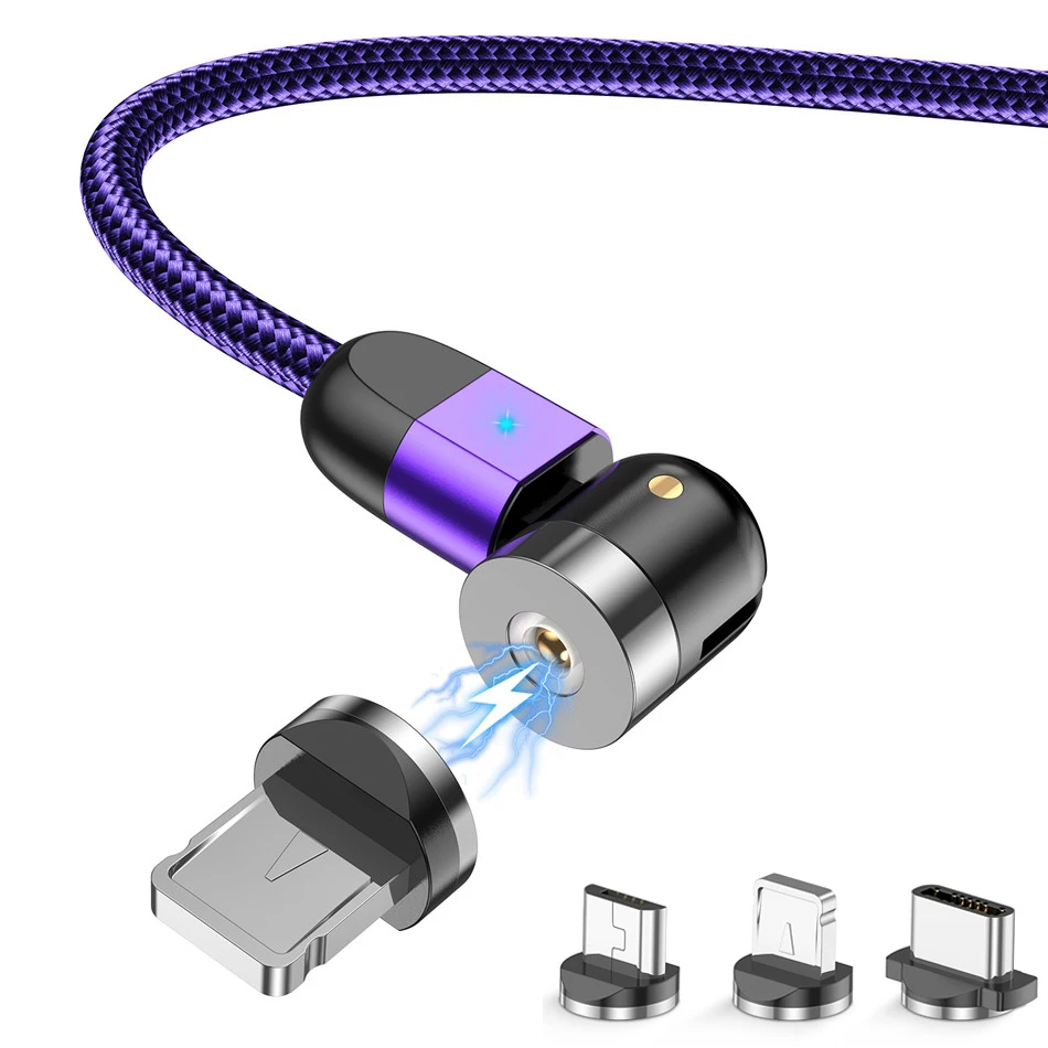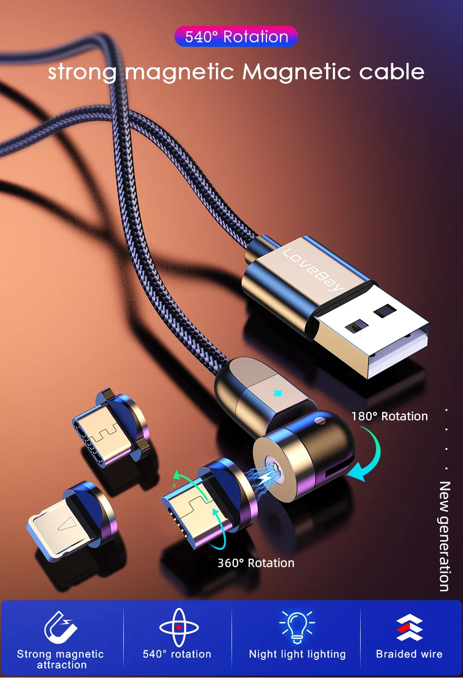 Lovebay, фиолетовый цвет, вращающийся на 540 Магнитный телефонный кабель со светодиодной подсветкой, многофункциональный USB-кабель для Iphone, Xiaomi