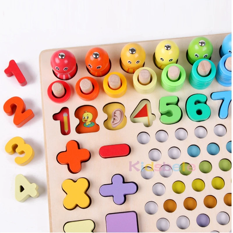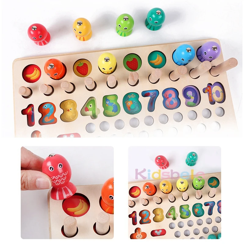 Детские деревянные развивающие игрушки Монтессори, Детские Ранние обучающие игрушки с числами, игрушки для рыбалки, игрушки-головоломки