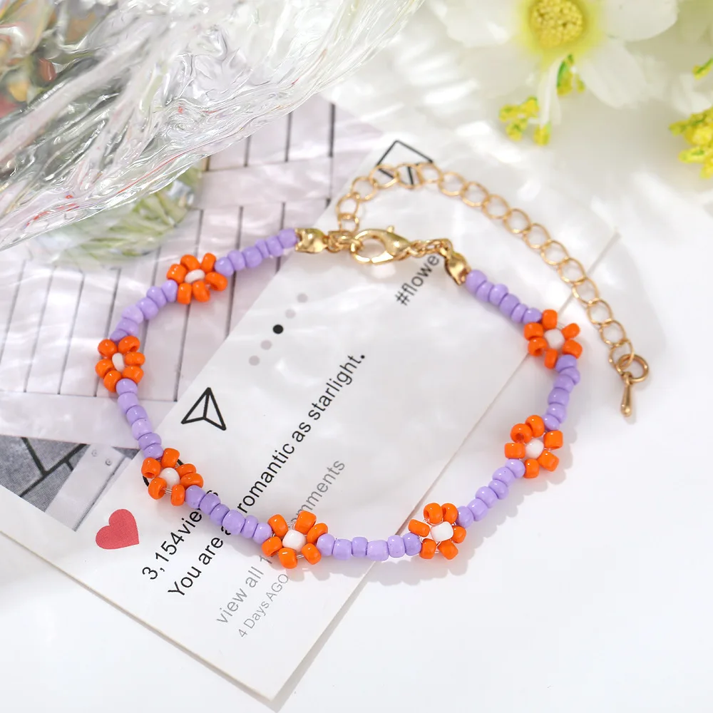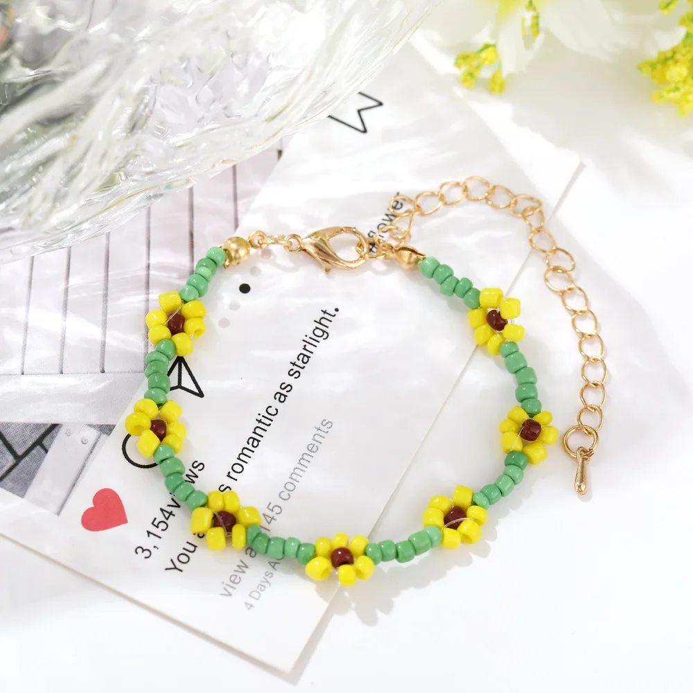 Женский эластичный браслет ручной работы, с цветами в богемном стил...