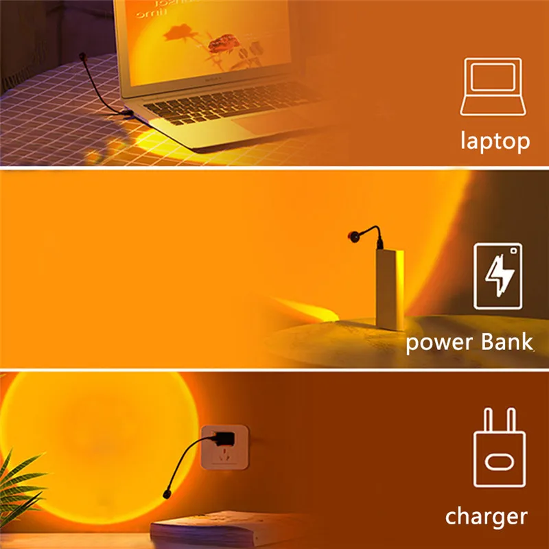 Радужный проектор USB, лампа С закатом, атмосферный ночник, украшение для дома, освещение для фотосъемки в виде кофейни, настенный декоративный светильник s