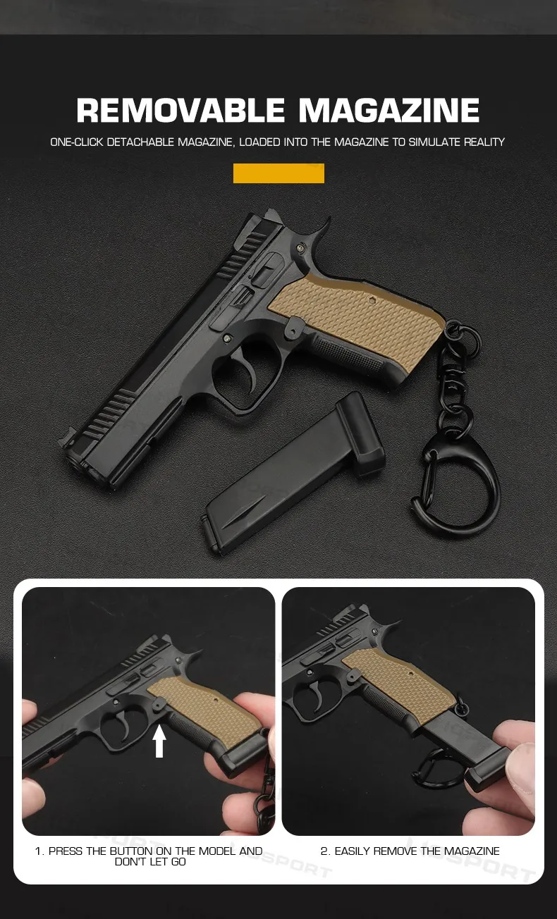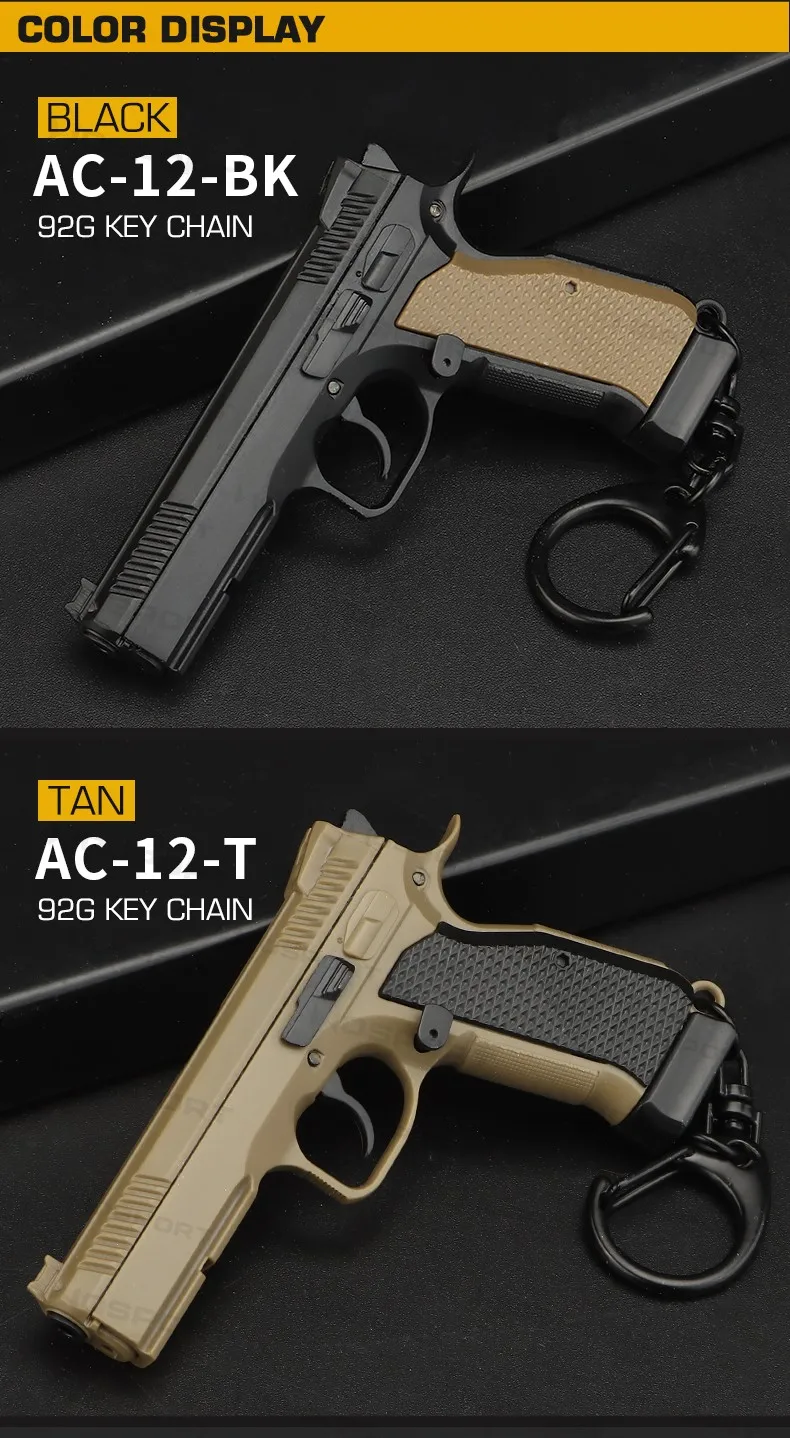 Заказывал кольт и cz. В целом очень хорошие модельки. Доставили раньше установленного срока. Претензии есть разве что к кольту: производитель попытался полностью повторить оригинал и из за этого у пистолета не спусковой крючок, а кнопка спуска как в оригинале. Вот только её очень сложно нажать пальцем. Если у чз спуск можно ногтями зацепить без проблем, то тут уж выкручивайтесь сами. Магазин вообще не пытается повторять оригинал. Если у чз опять же он копирует оригинал, то у Кольта это просто обрубок пластика. Если их не взводить и не вынимать магазин, то я думаю все модельки хороши как брелки. А вот если вы хотите хоть иногда с ними как то играться, то кольт будет не самым лучшим решением.