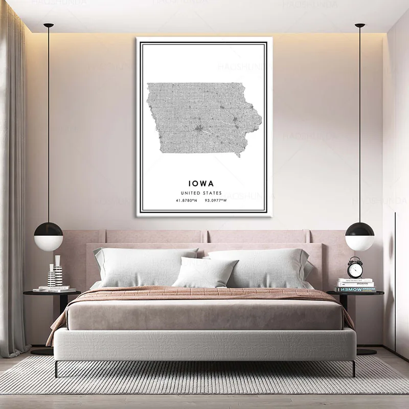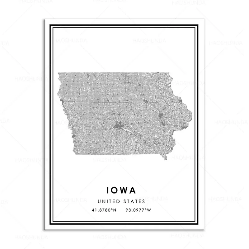 Черно-белая искусственная Картина на холсте, линия Айова, настенный художественный постер, украшение комнаты, картина в рамке