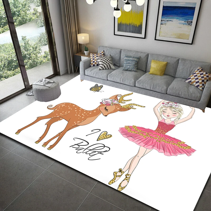 Круглый ковер с мультипликационным принтом балерин, коврики для спа...