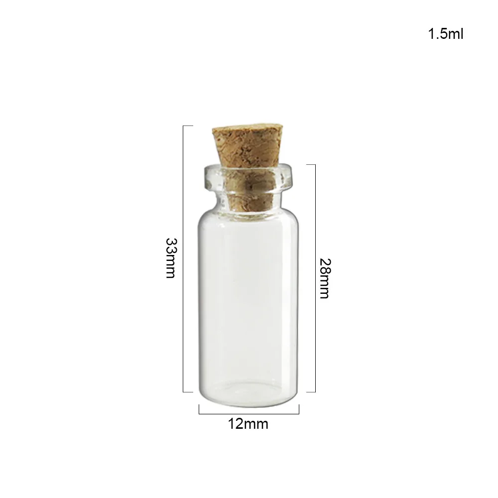 100 x Мини Прозрачное стекло желая пробка пробки стеклянные бутылки Флаконы Контейнеры для свадьбы 0,5 мл 1 мл 1,5 мл 2 мл до 5 мл