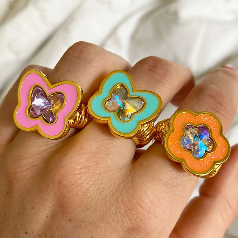 Новые цветные циркониевые золотые кольца на палец в форме бабочки, цветка, капли, масла, модные ювелирные изделия, подарок для женщин и девушек HANGZHI 2021
