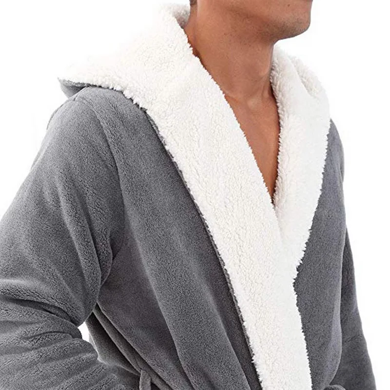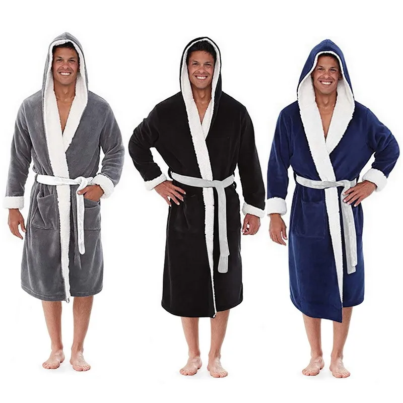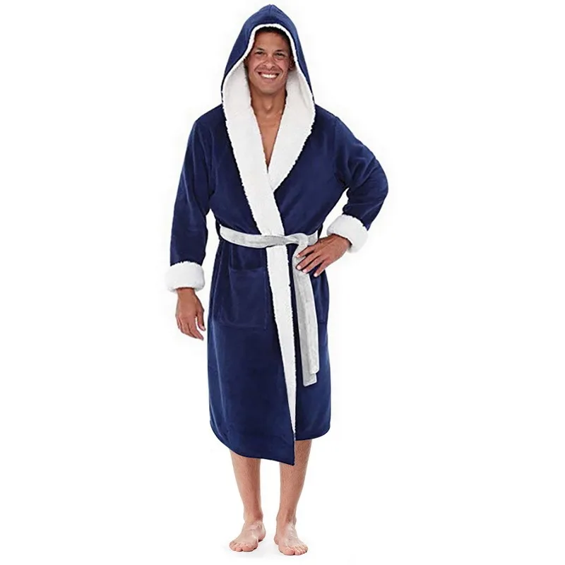 Удлиненный банный халат с капюшоном Однотонный мужской зимний плюшевый Карманный длинный халат в стиле пэчворк с длинным рукавом Интимная Пижама с V-образным вырезом 2021
