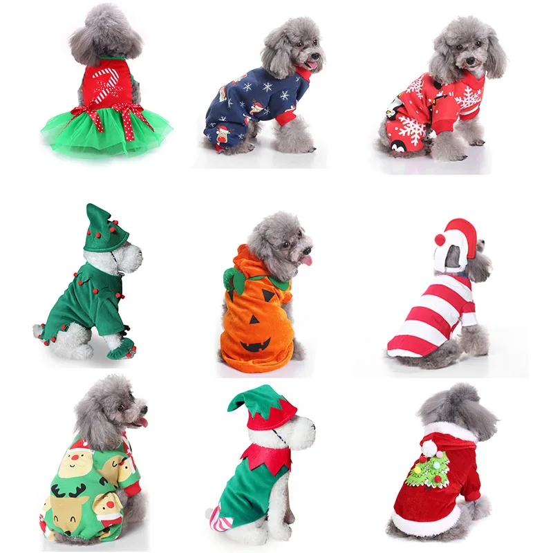 Рождественский праздничный костюм для маленьких собак, кошек, домашних животных, Рождественский костюм, куклы для собак, одежда с принтом лося, Санта-Клауса, Рождественский эльф
