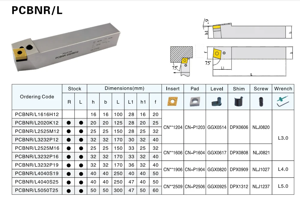Токарные инструменты NiceCutt PCBNRL, токарный станок с чпу, держатель внешнего токарного инструмента для токарной пластины из карбида CNMG