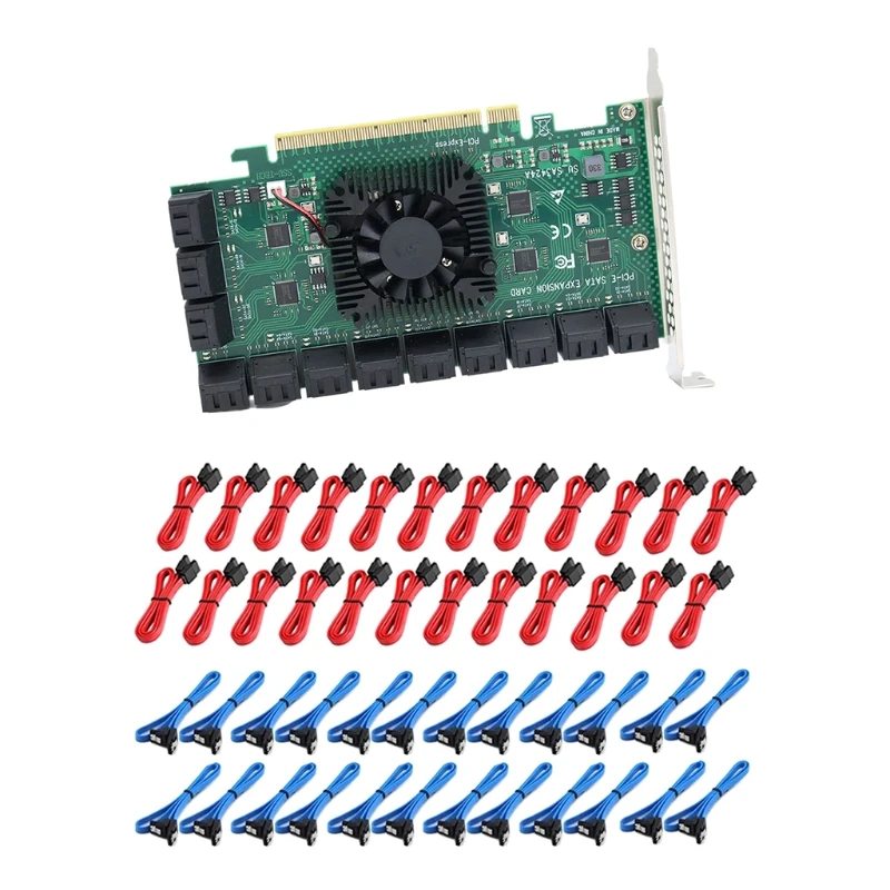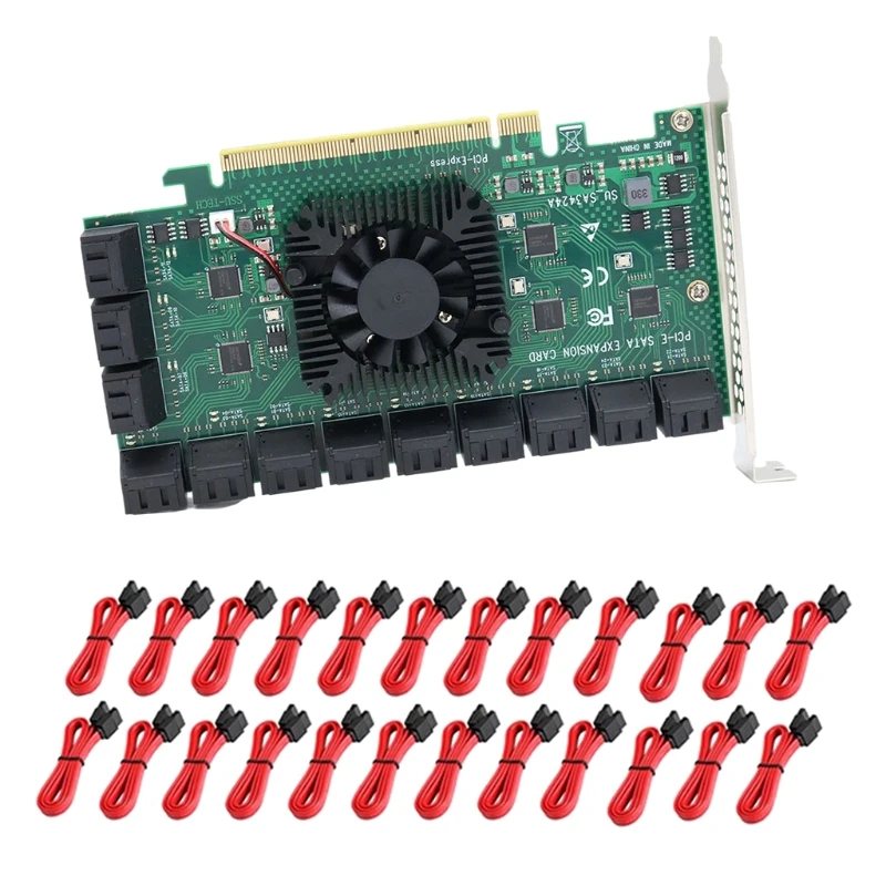 Карта SATA PCIE, 24 порта с кабелями, 6 Гбитс, контроллер SATA 3,0,...