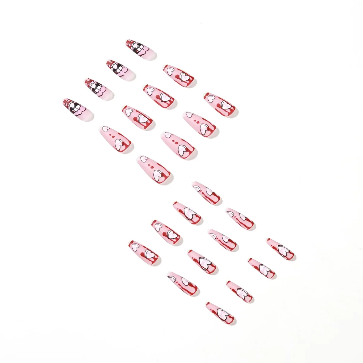 24 шт., профессиональные накладные ногти, губы, сердце, Длинные балерины, французские акриловые накладные ногти, женские накладные ногти на Хэллоуин, пресс на ногти, полное покрытие ногтей