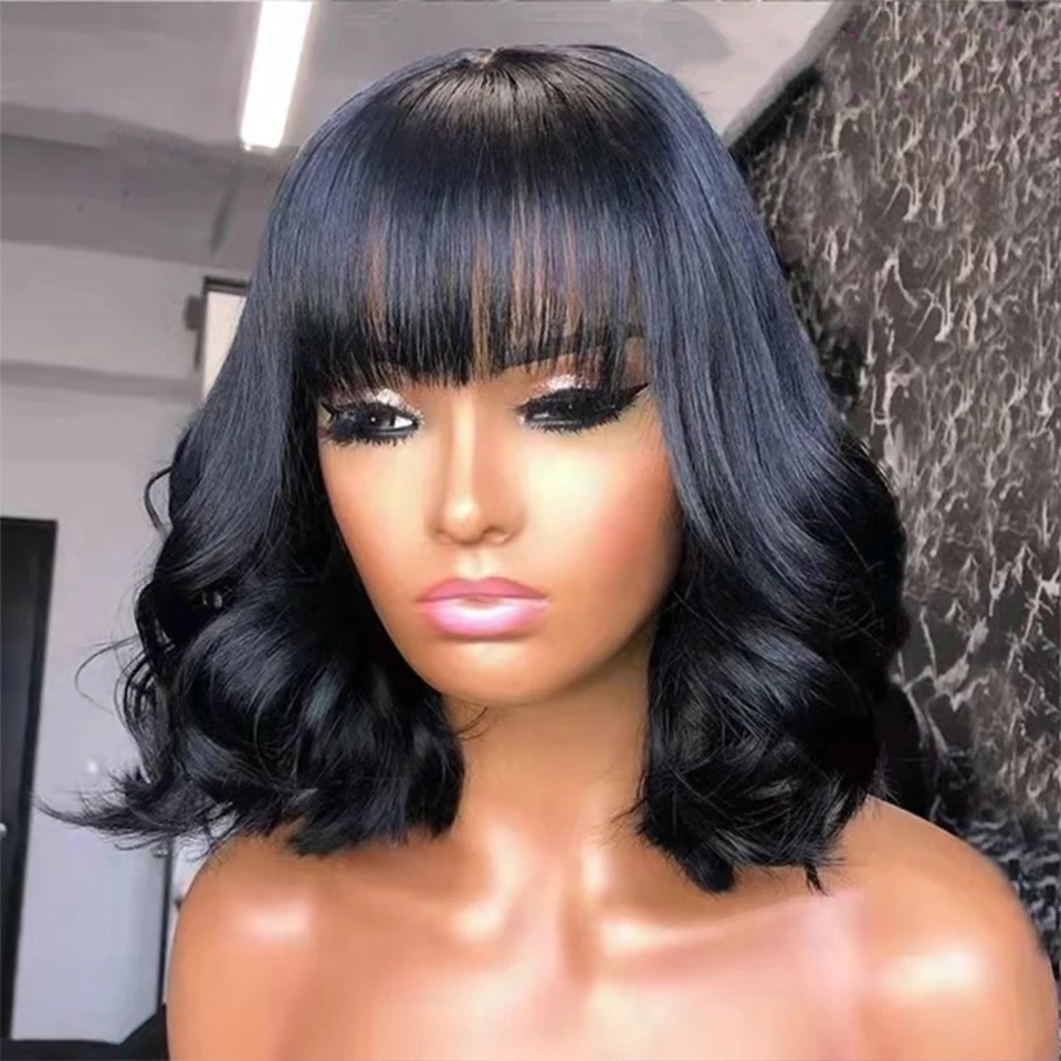 Парики из волнистых человеческих волос с челкой, прямые волосы, бразильский Реми, свободные волнистые волосы, парики полной машинной работы, плотность 250% для черных женщин