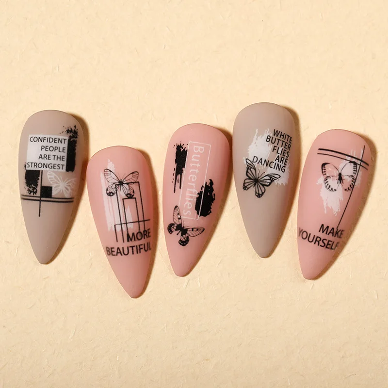Мраморные буквы, 3D наклейки для ногтей, Бабочка, линия, полоса, са...