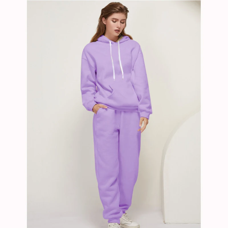 Комплект из двух предметов, повседневный флисовый спортивный костюм, женские зимние комплекты 2021, толстовка с капюшоном и длинным рукавом, спортивные брюки, женский костюм