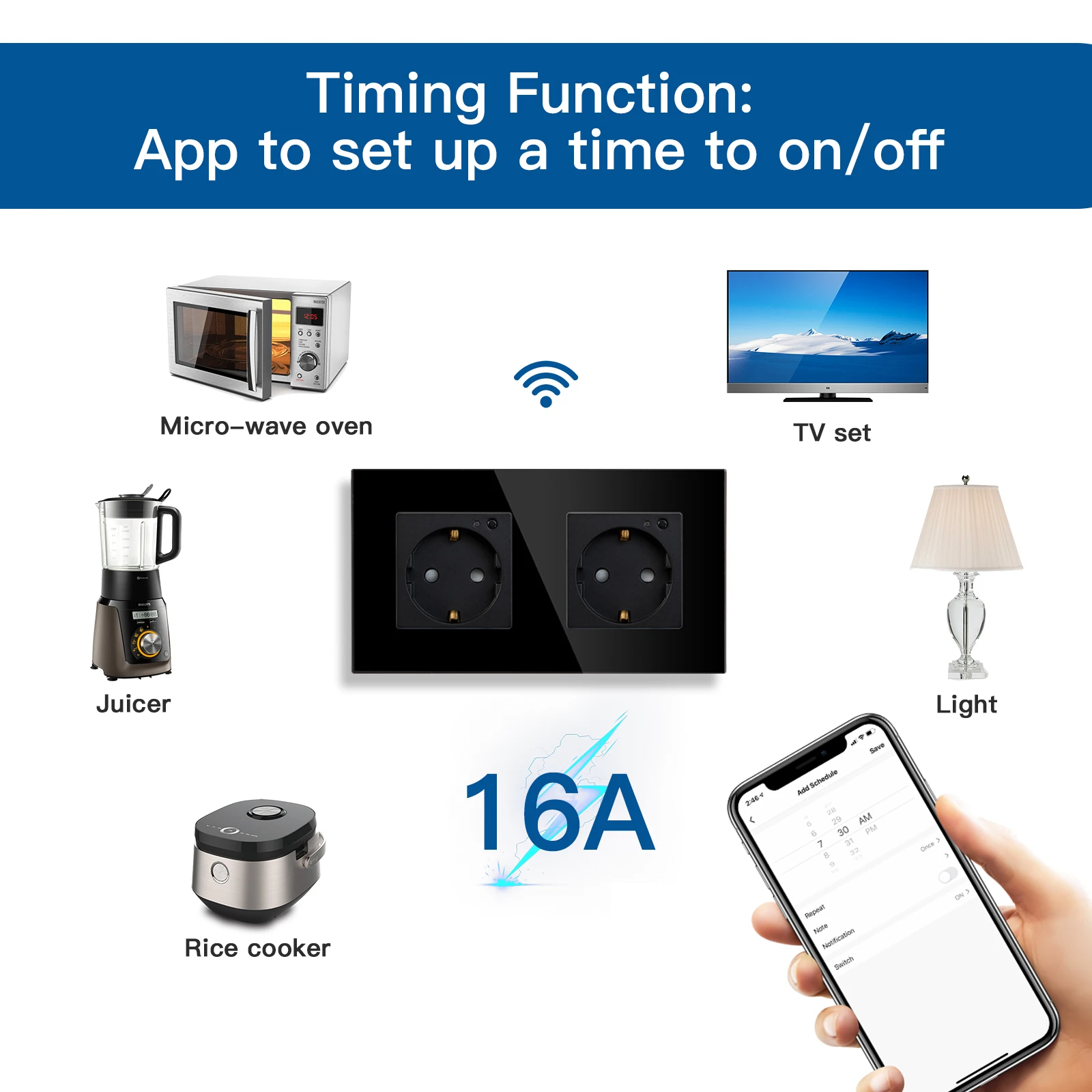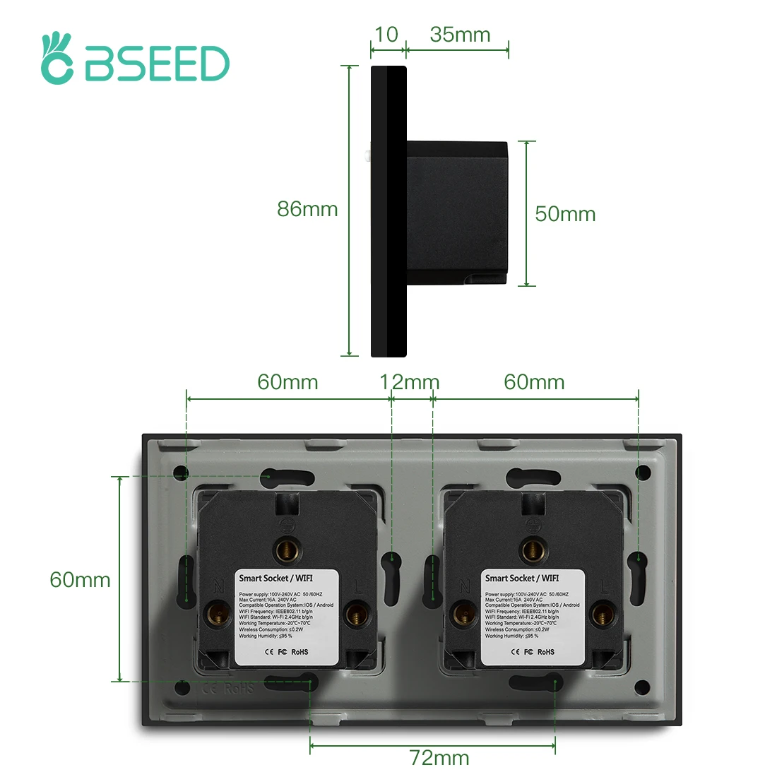 BSEED Wifi умная настенная двойная розетка штепсельная вилка ЕС 16A Tuya умный дом работает с Alexa Echo Google Домашняя Беспроводная розетка