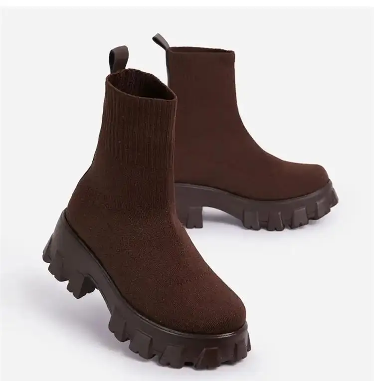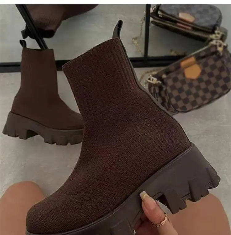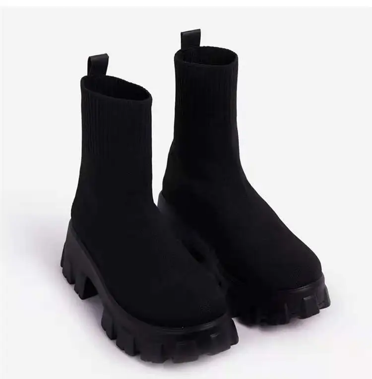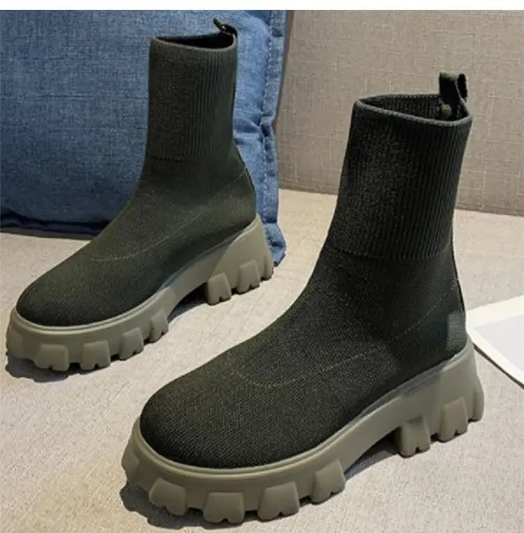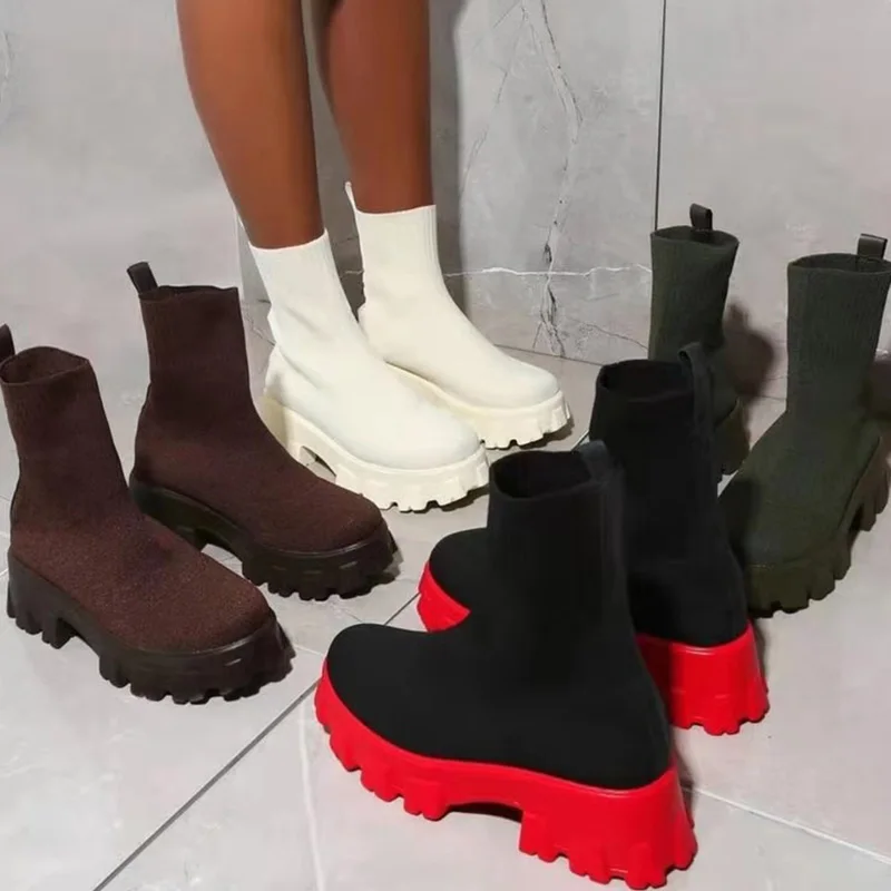 Женские ботинки, новинка 2021, зимние ботинки, обувь на платформе для осени, ботинки-носки, женская обувь с круглым носком, женские кроссовки на низком каблуке