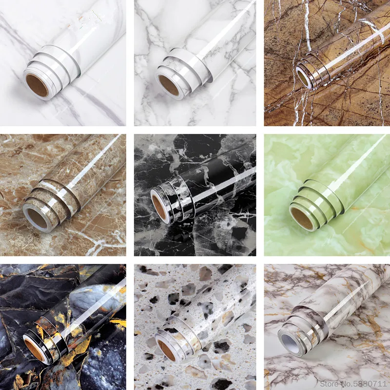 Мраморные Самоклеящиеся ПВХ обои 50 цветов, для гостиной, самоклеящиеся водонепроницаемые Стикеры для обновления кухонных шкафов, рабочего стола