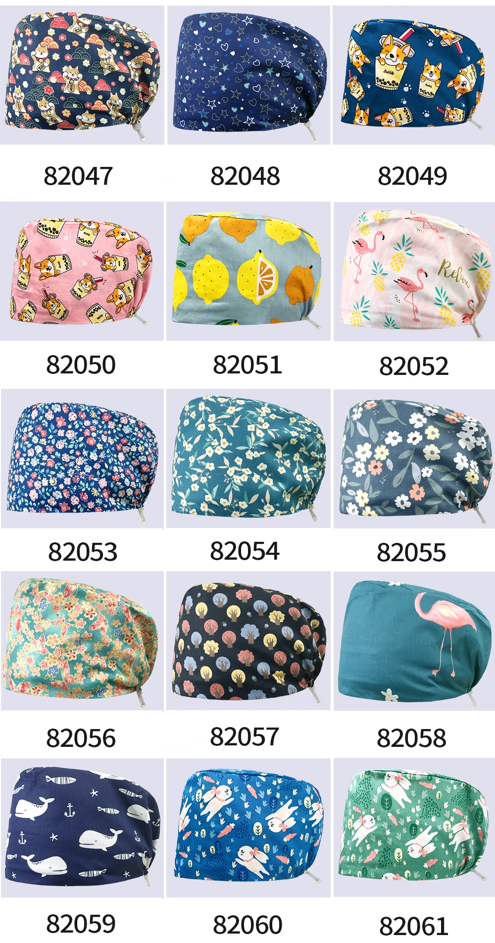 Шапка медсестринская с принтом животных, мягкая впитывающая пот пол...