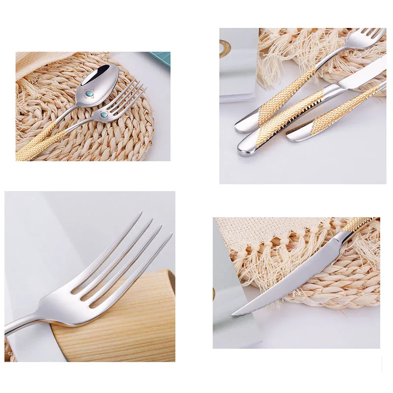Новинка, столовые приборы из нержавеющей стали золотистогосеребрист...