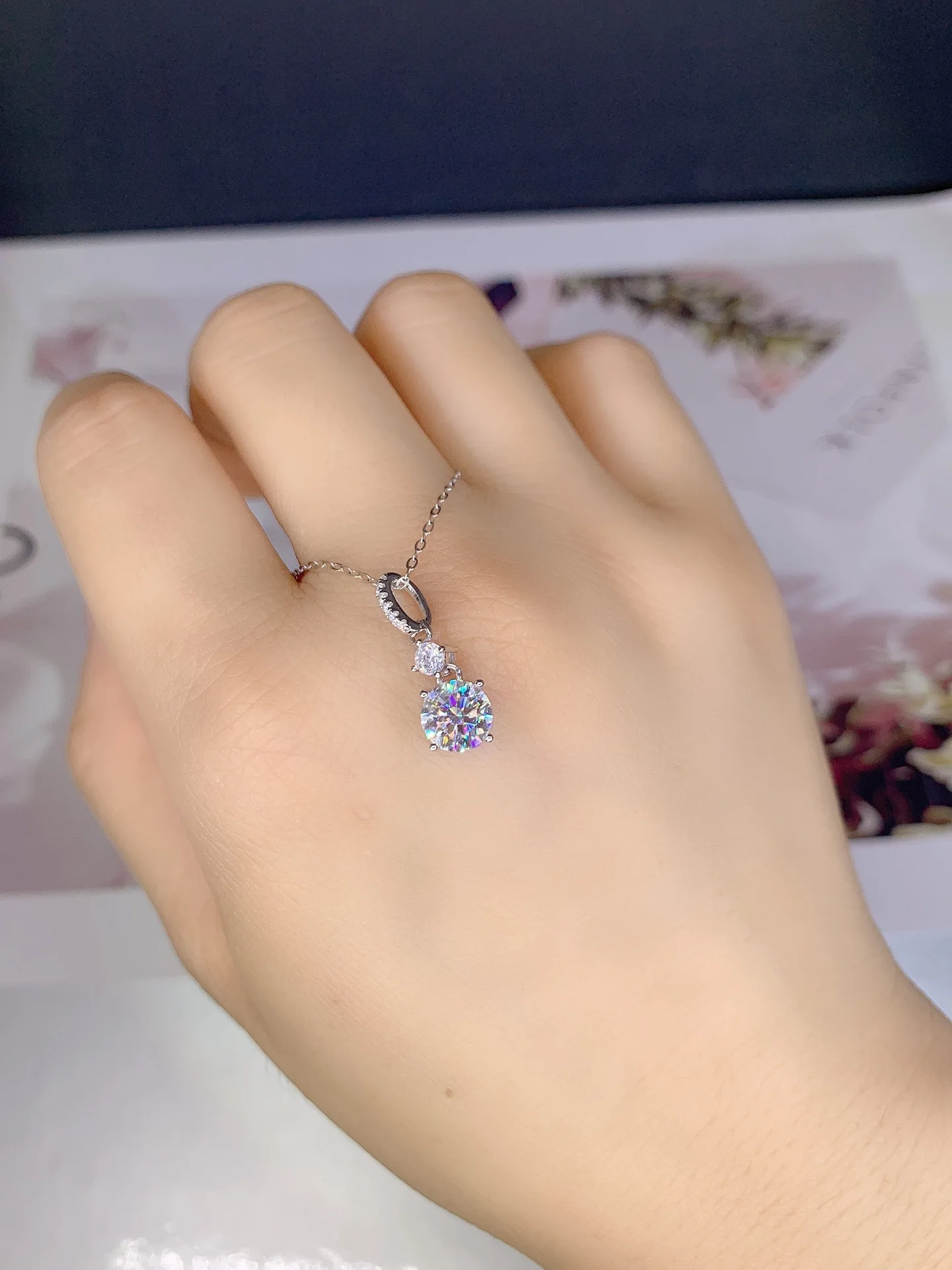Ожерелье с кулоном из муассанита и драгоценных камней, 18 К, 1 карат
